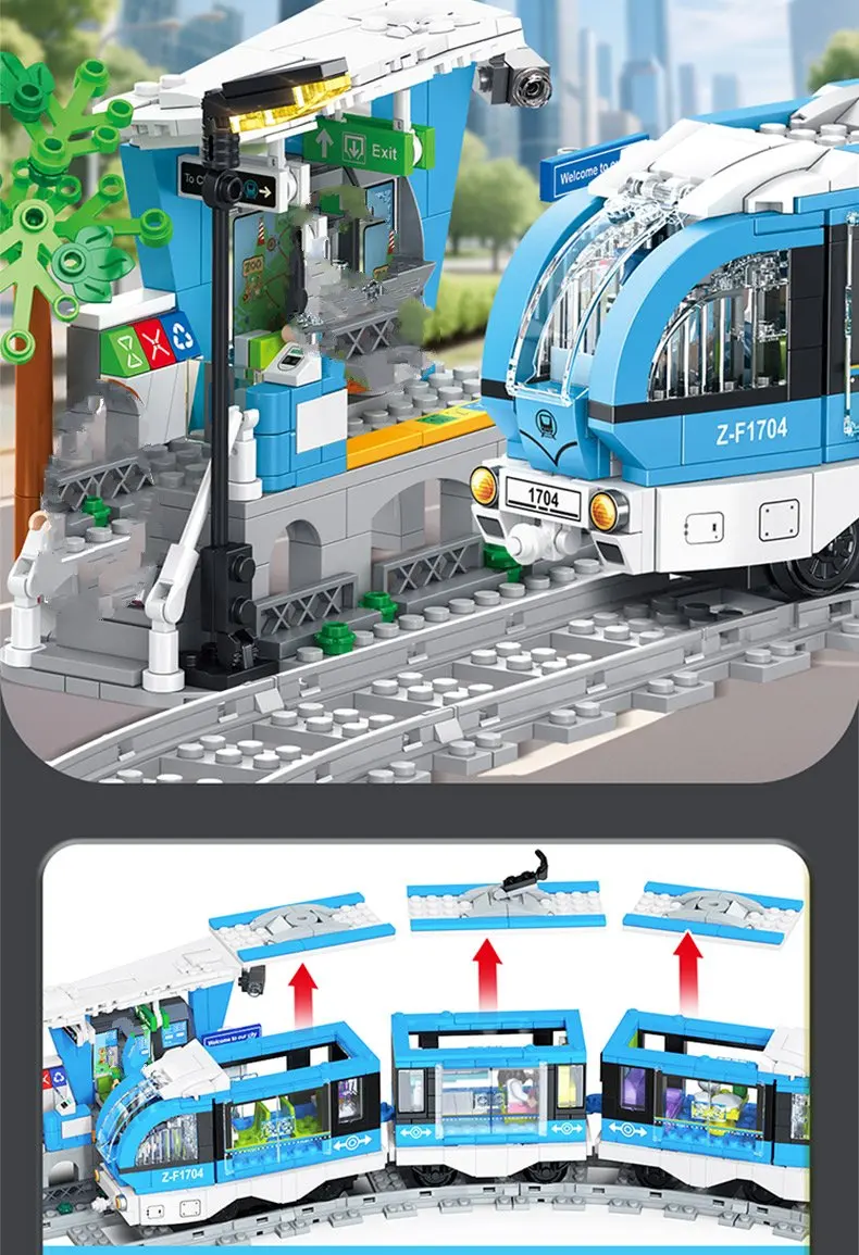 2025 nouveau bloc de construction FC1704 ensemble de puissance train intermédiaire train enfants garçons filles intelligence assemblage bloc de construction jouet cadeau
