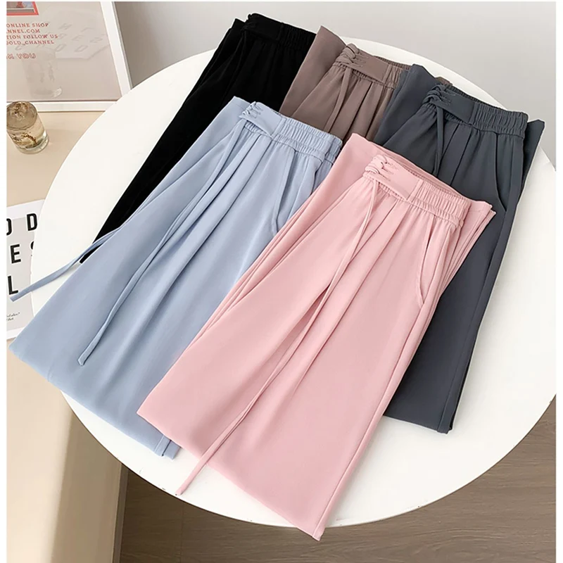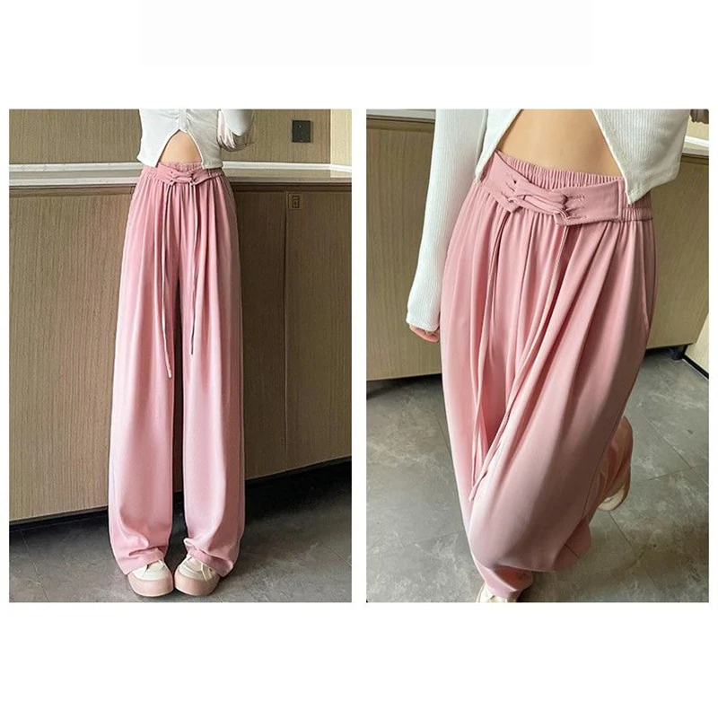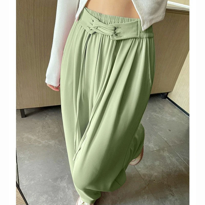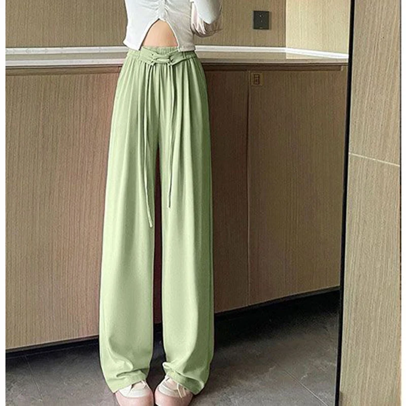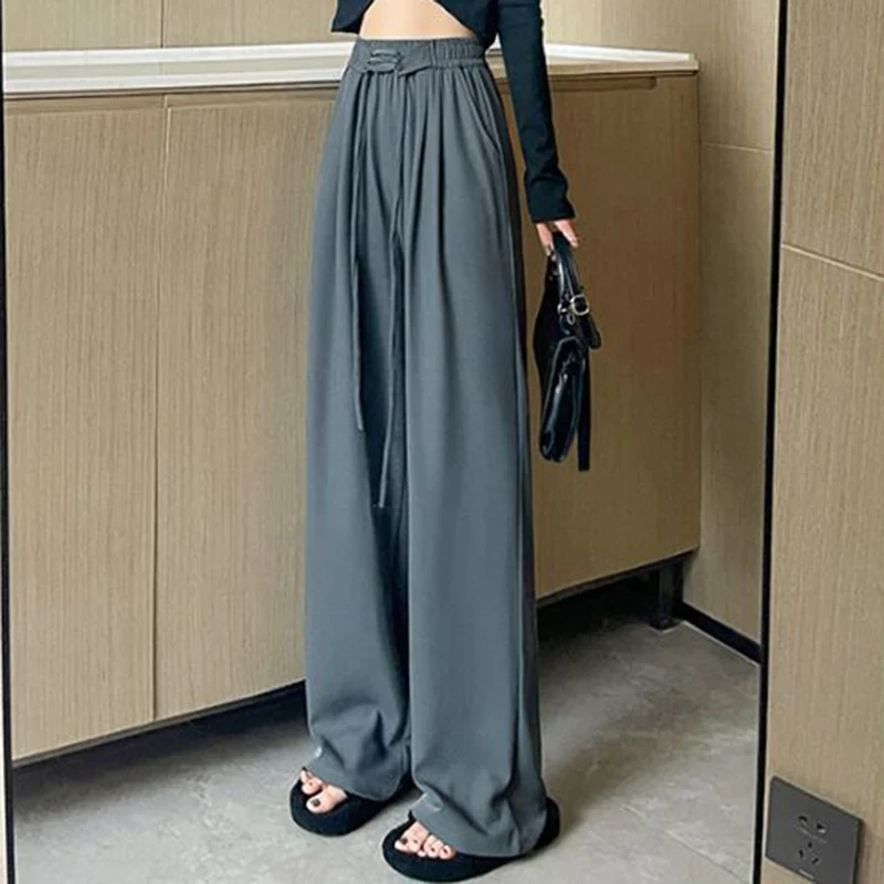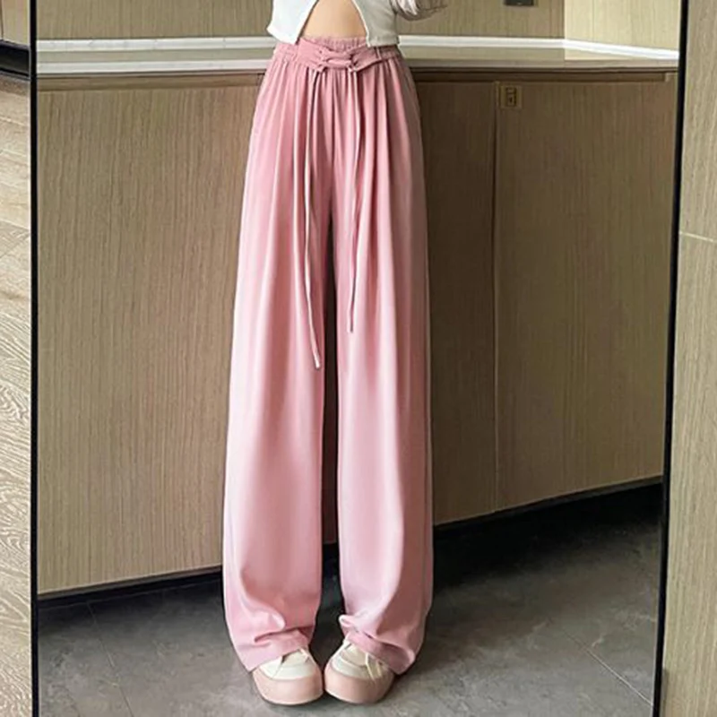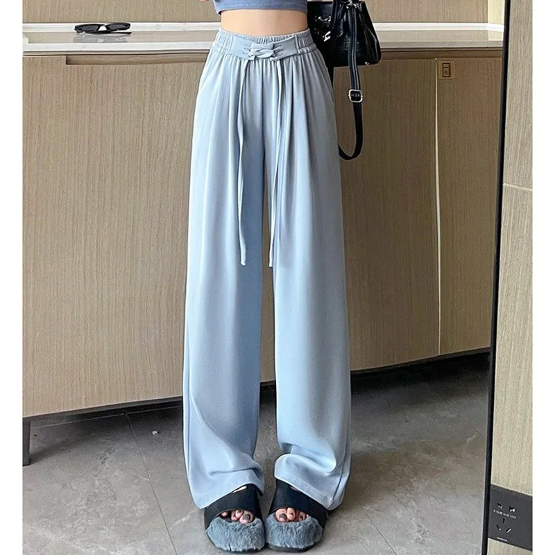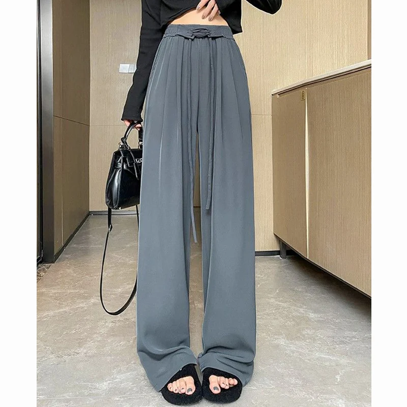 2025 printemps dame Chic taille haute costume pantalon femme coréenne à lacets jambe droite pantalon femmes couleur unie tout Match pantalon de travail