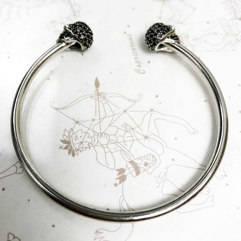 Bracelet,Bangles,Crâne,Pave,Europe,Style,Mode,Karma,Punk,Bijoux,Cadeau,Rebel,Hommes,Femmes,925,Sterling,Argent