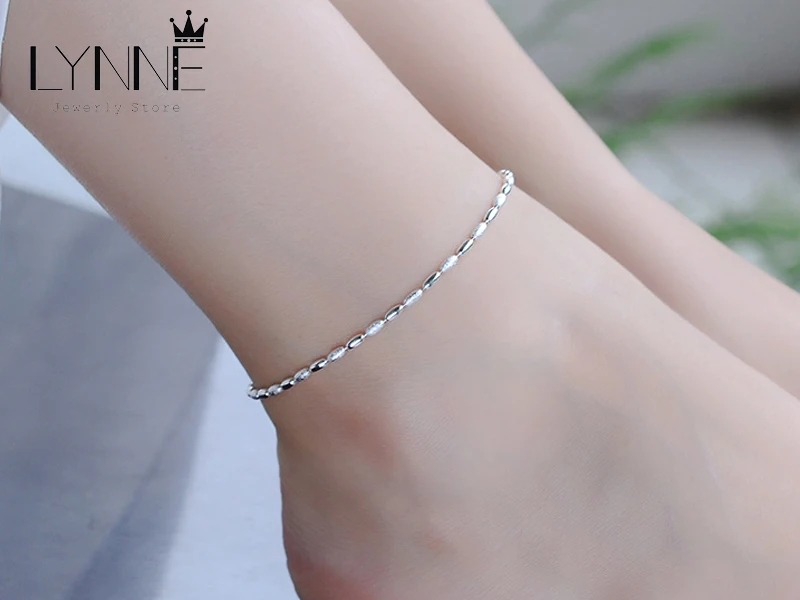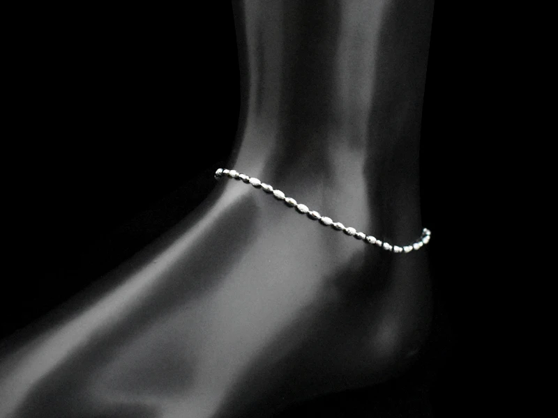Chaîne de cheville en perles pour femmes, petit mètre, en argent Sterling 925, Grain d'olive, bijoux de pied, cadeau, nouvelle mode