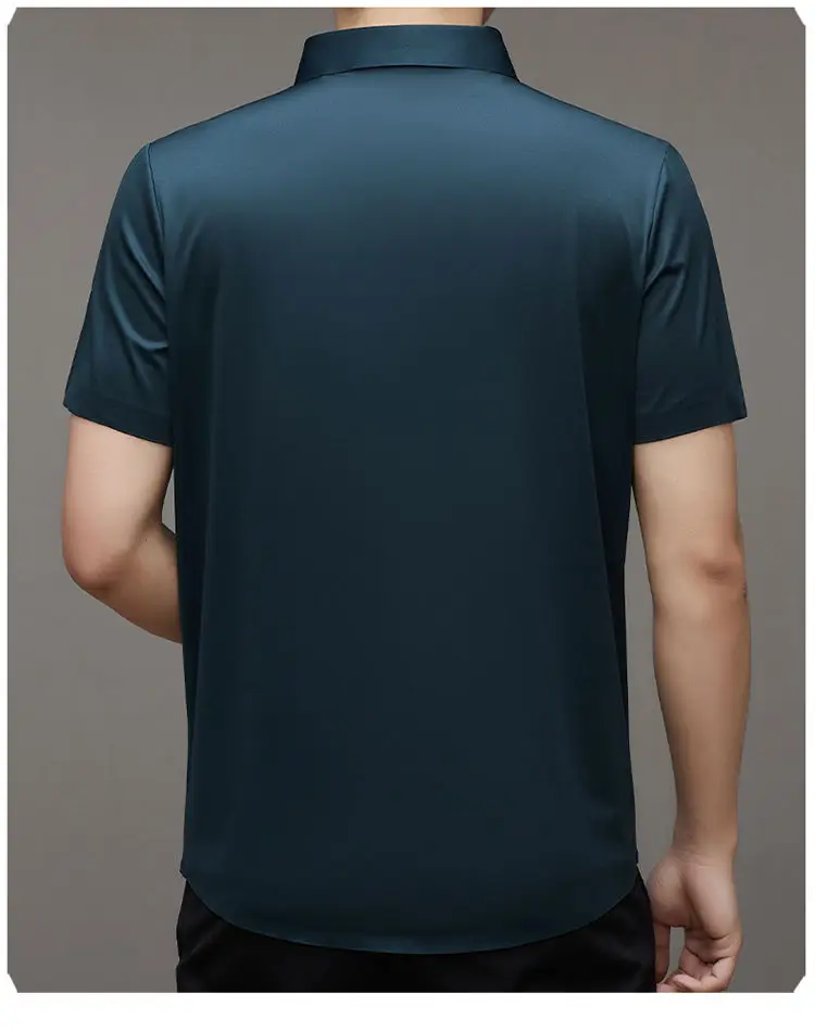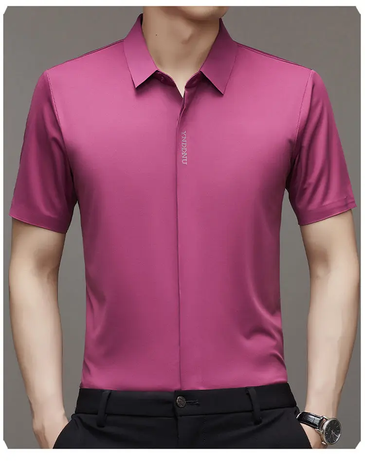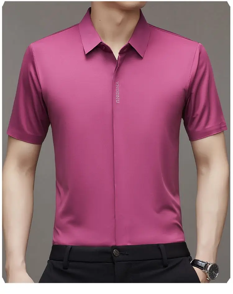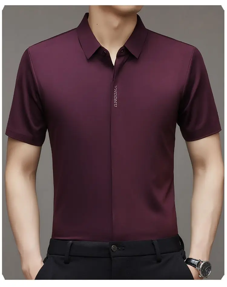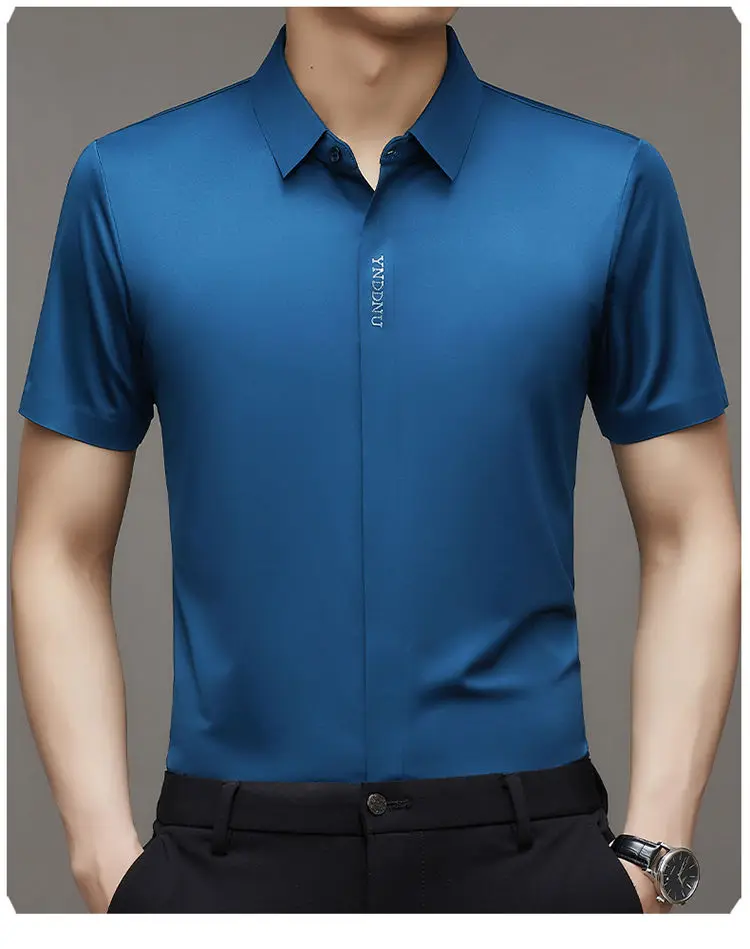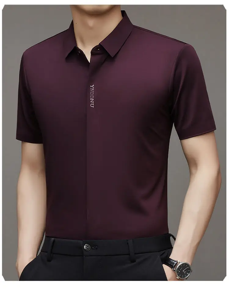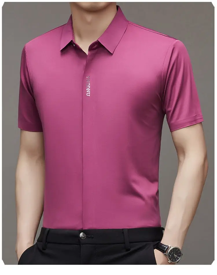 Chemise d'été intelligente et décontractée à manches courtes pour hommes, couleur unie, col carré, boutons brodés, lettre haut de gamme, résistant aux rides