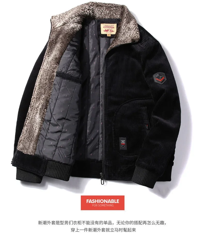 Coupe-Vent Thermique en Velours Côtelé pour Homme, Veste Chaude avec Col en Fourrure, Vêtement d'Extérieur Décontracté, Grande Taille, Hiver