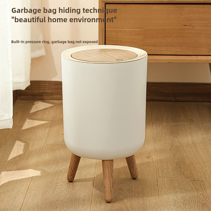 Cylindrical Plastic Trash Can with Press-Top Lid - Quiet Close Waste Bin for Office, Kitchen, Bathroom, Bedroom - No Electricity Needed, Easy Open Top
