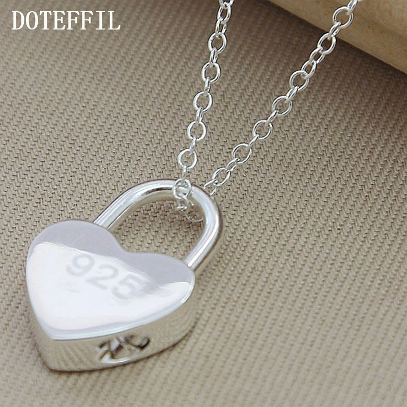 DOTEFFIL – collier avec pendentif carré/verrouillage en forme de cœur, en argent Sterling 925, avec Logo Original, chaîne de 16 à 30 pouces pour femmes, fiançailles et mariage