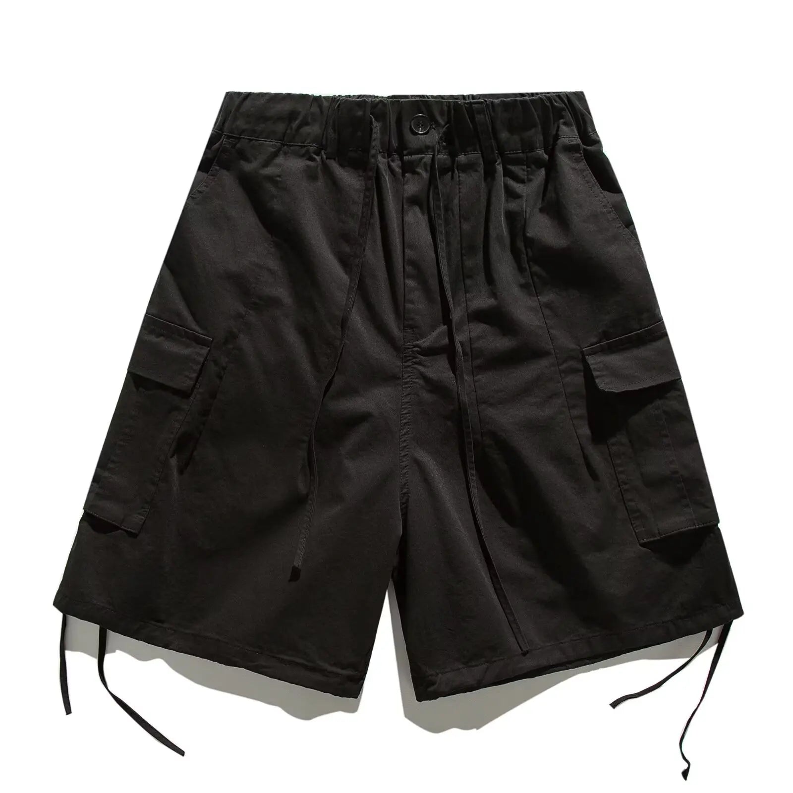 Ensemble coréen pour hommes, chemise à manches courtes + plusieurs poches, Short d'outillage, couleur unie, rétro, tendance d'été, ensemble deux pièces