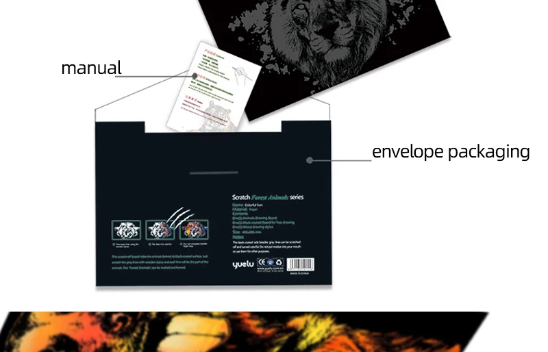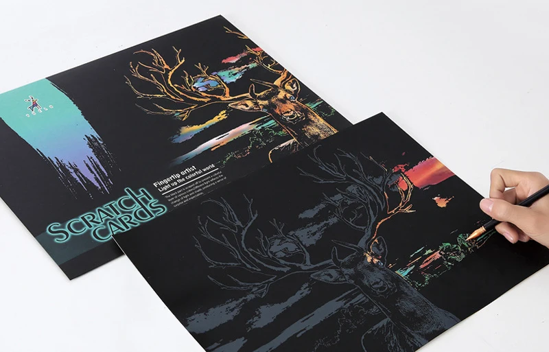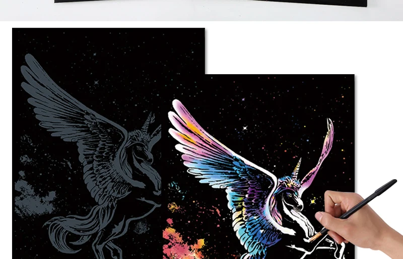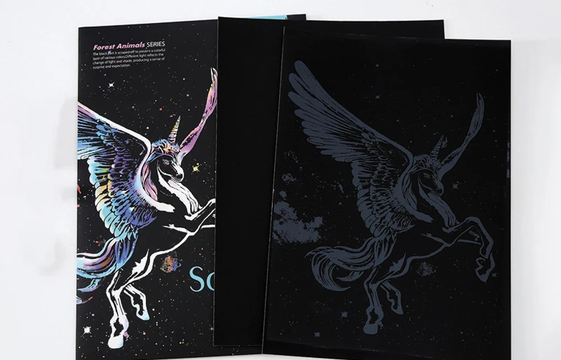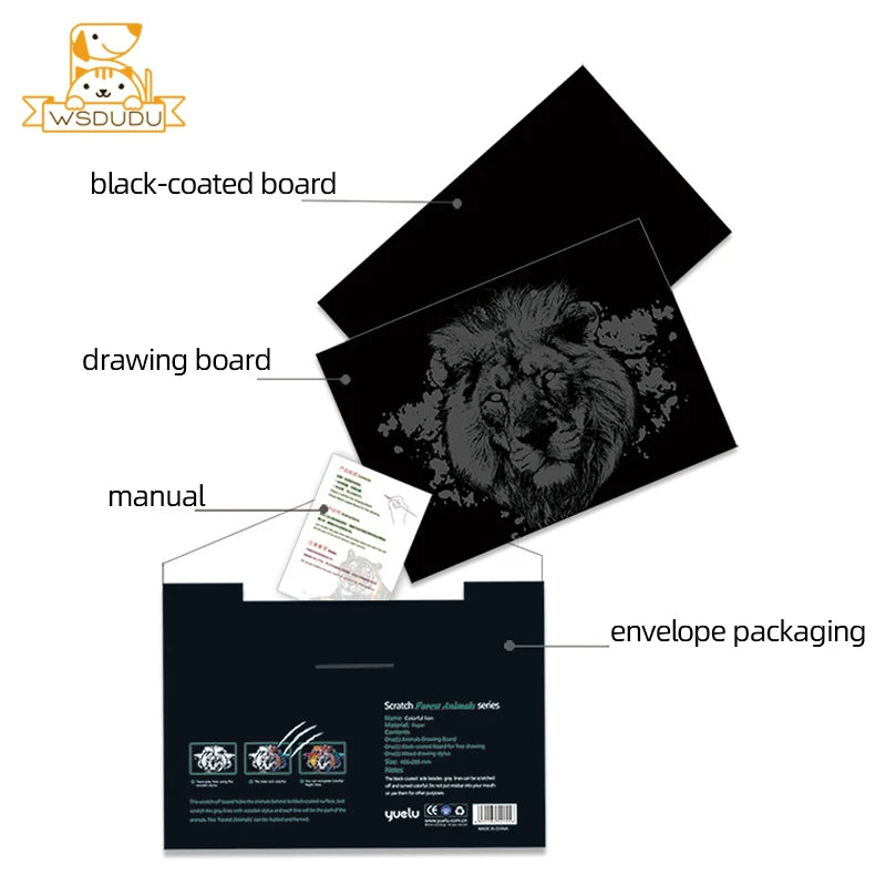 Ensemble de papier à gratter pour animaux, 2 feuilles, avec stylet, bricolage, artisanat arc-en-ciel, Lion, licorne, chat, chien, jouet de peinture, cadeau créatif pour enfants et adultes