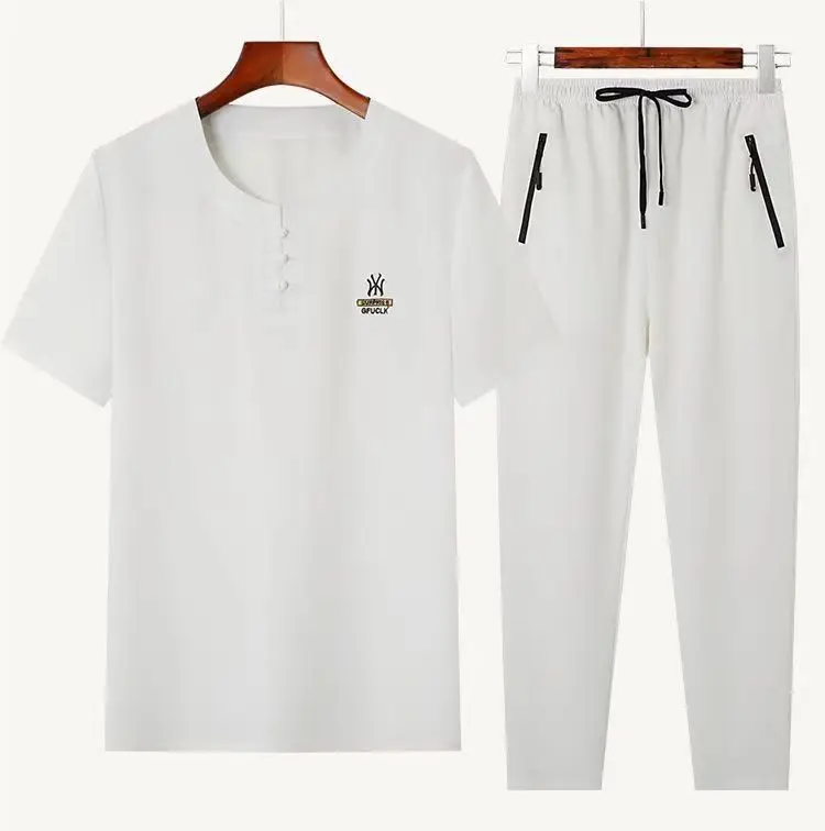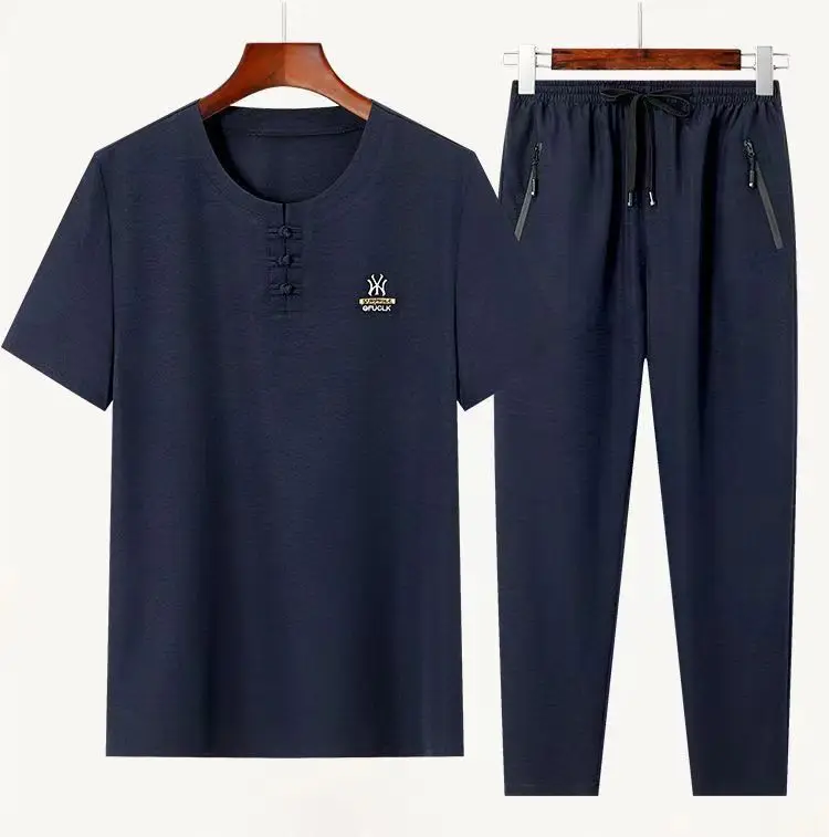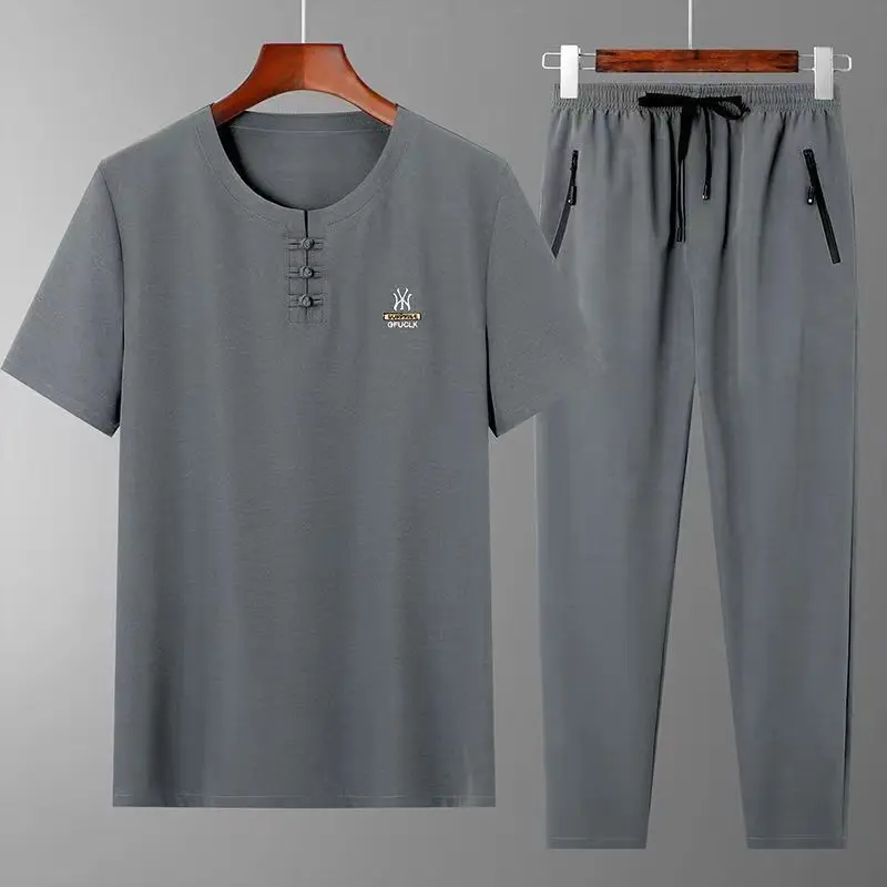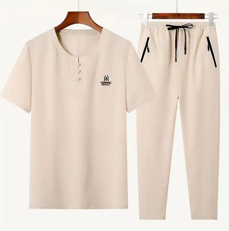 Ensemble Hanfu Brodé en Lin pour Homme, Style Chinois, Trempé, Tang Kung Fu Traditionnel, Tapiercing, Pantalon d'Été en Coton
