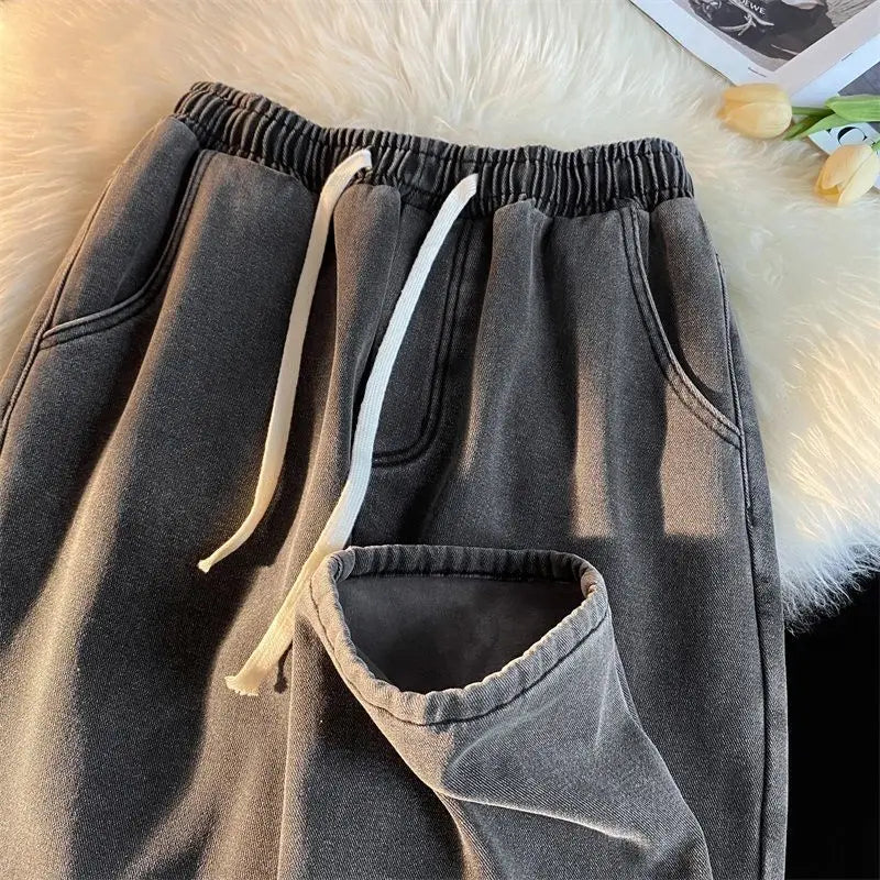 Jean coréen rétro pour hommes et femmes, modèles d'automne et d'hiver, rembourré et épais, ample, droit, jambes larges, pantalons décontractés