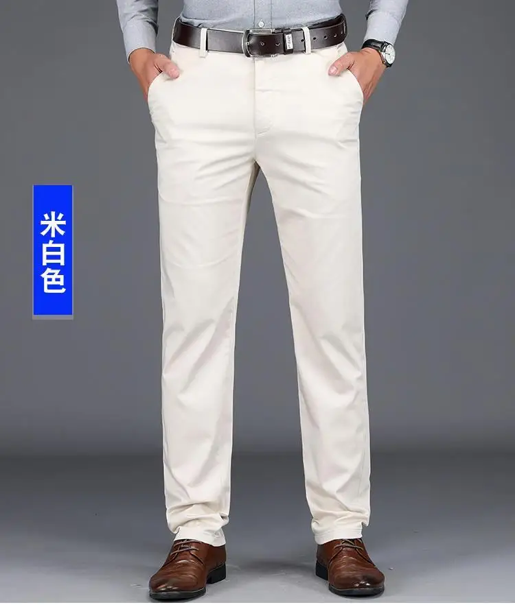 Jean Slim et Décontracté pour Homme, Pantalon Droit de Couleur Unie, Blanc Cassé, à la Mode, Grande Taille, FJ27-38, Été