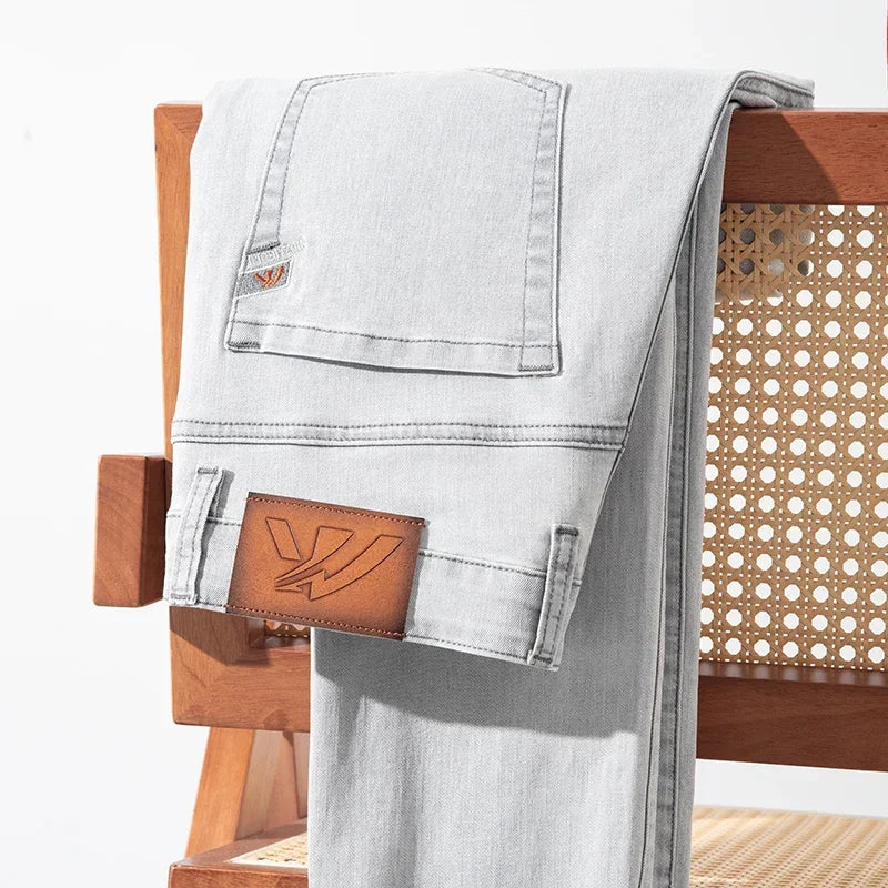 Jean Slim gris clair pour hommes, pantalon en Denim extensible, pour affaires, nouvelle collection 2024