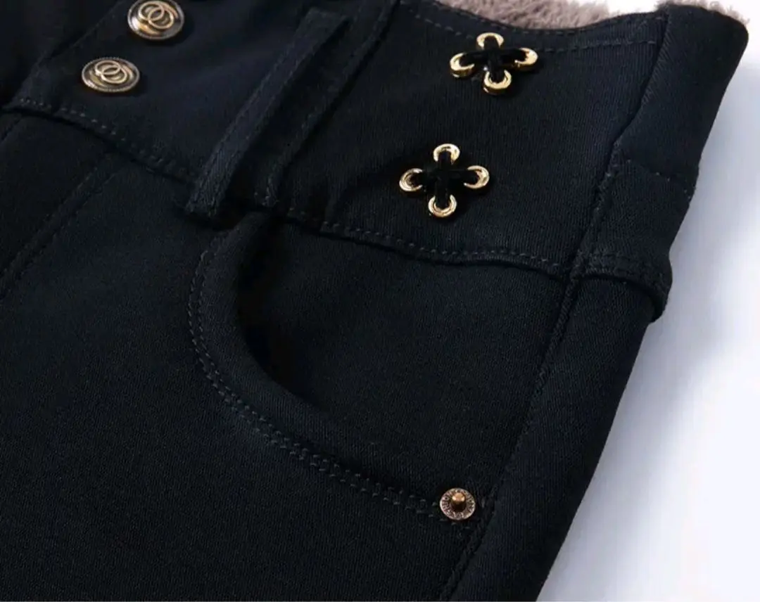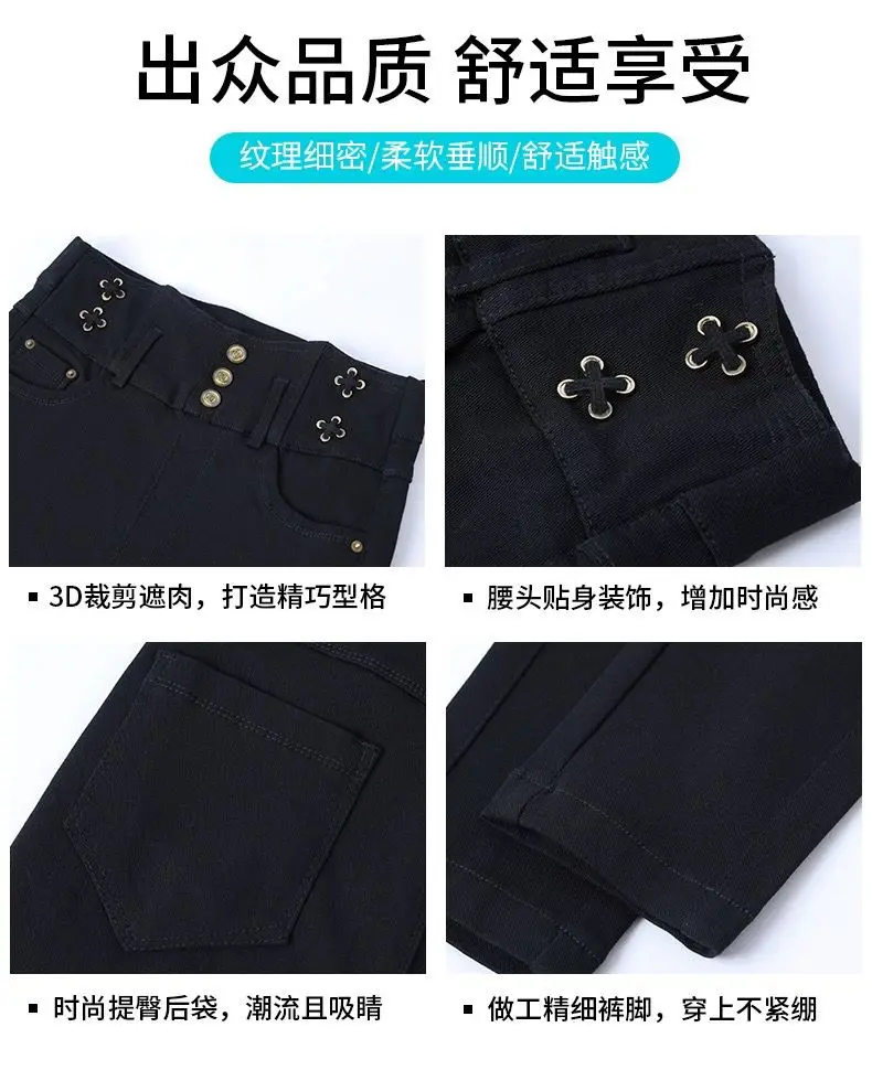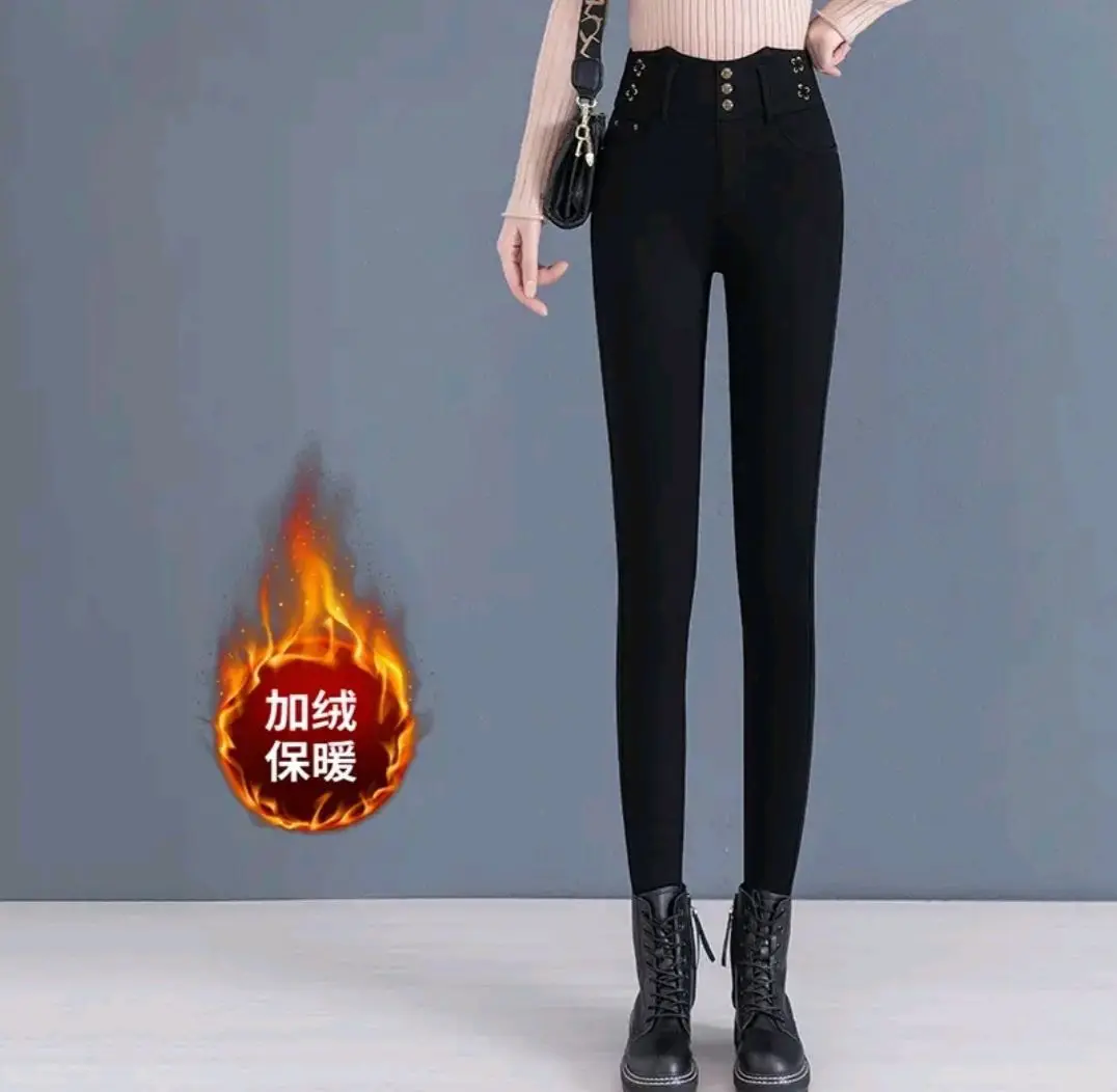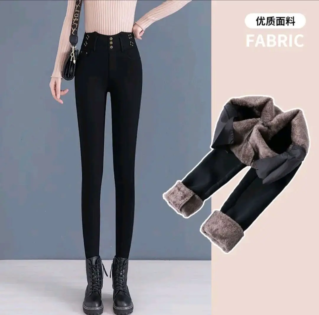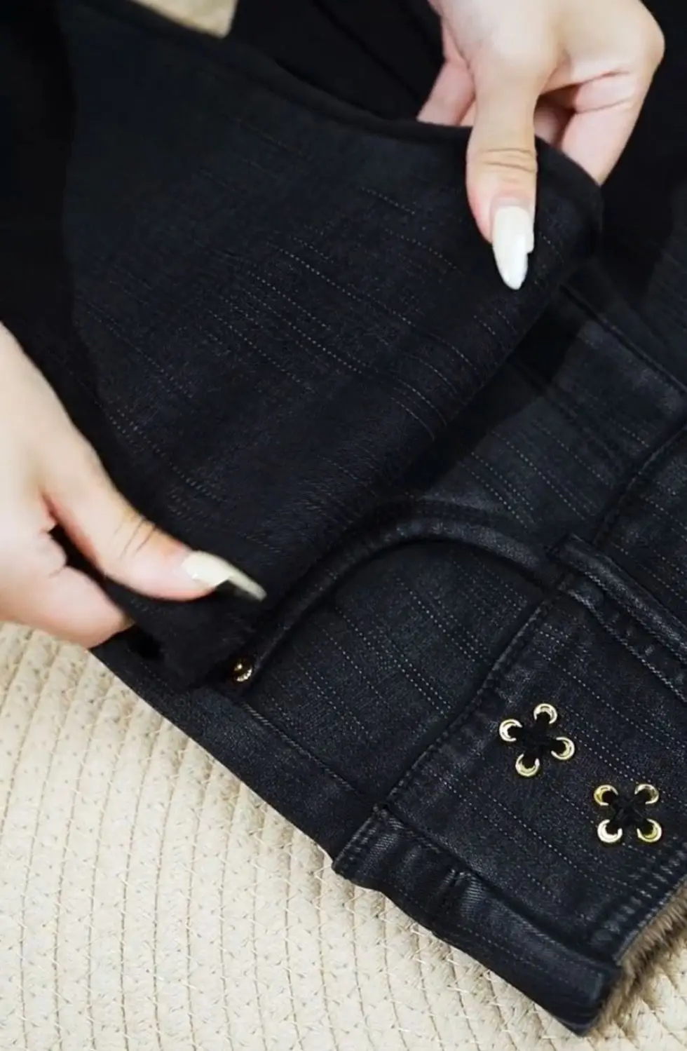 Jean taille haute élastique coréen avec peluche arctique, pantalon crayon droit noir mince, bouton solide, fermeture éclair, mode automne et hiver, nouveau