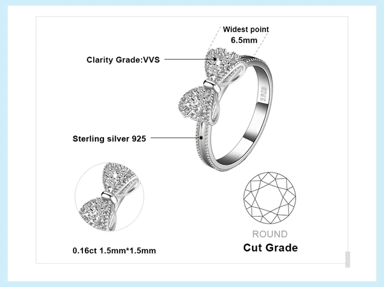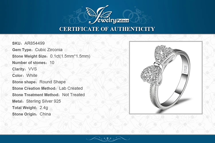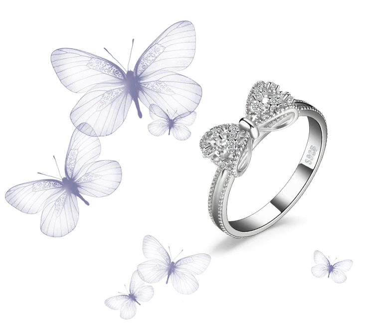 JewelpopPalace-Bague en argent regardé 925 avec nœud papillon pour femme, cubique, contre-indiqué, cadeau de bijoux à la mode