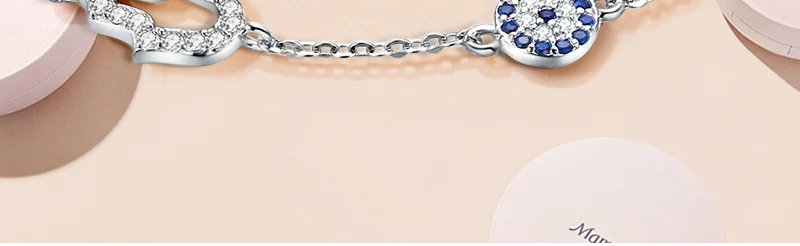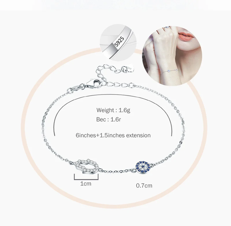 Kaletine-Bracelet à breloques Hamsa Evil Eye pour femme, argent regardé 925, bracelets JOLink CZ bleus, bijoux turcs, bonne chance
