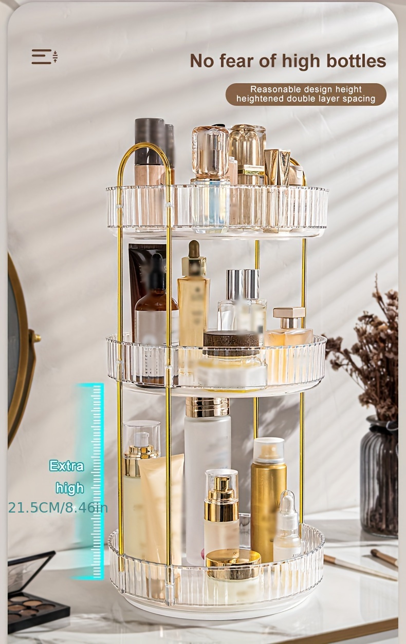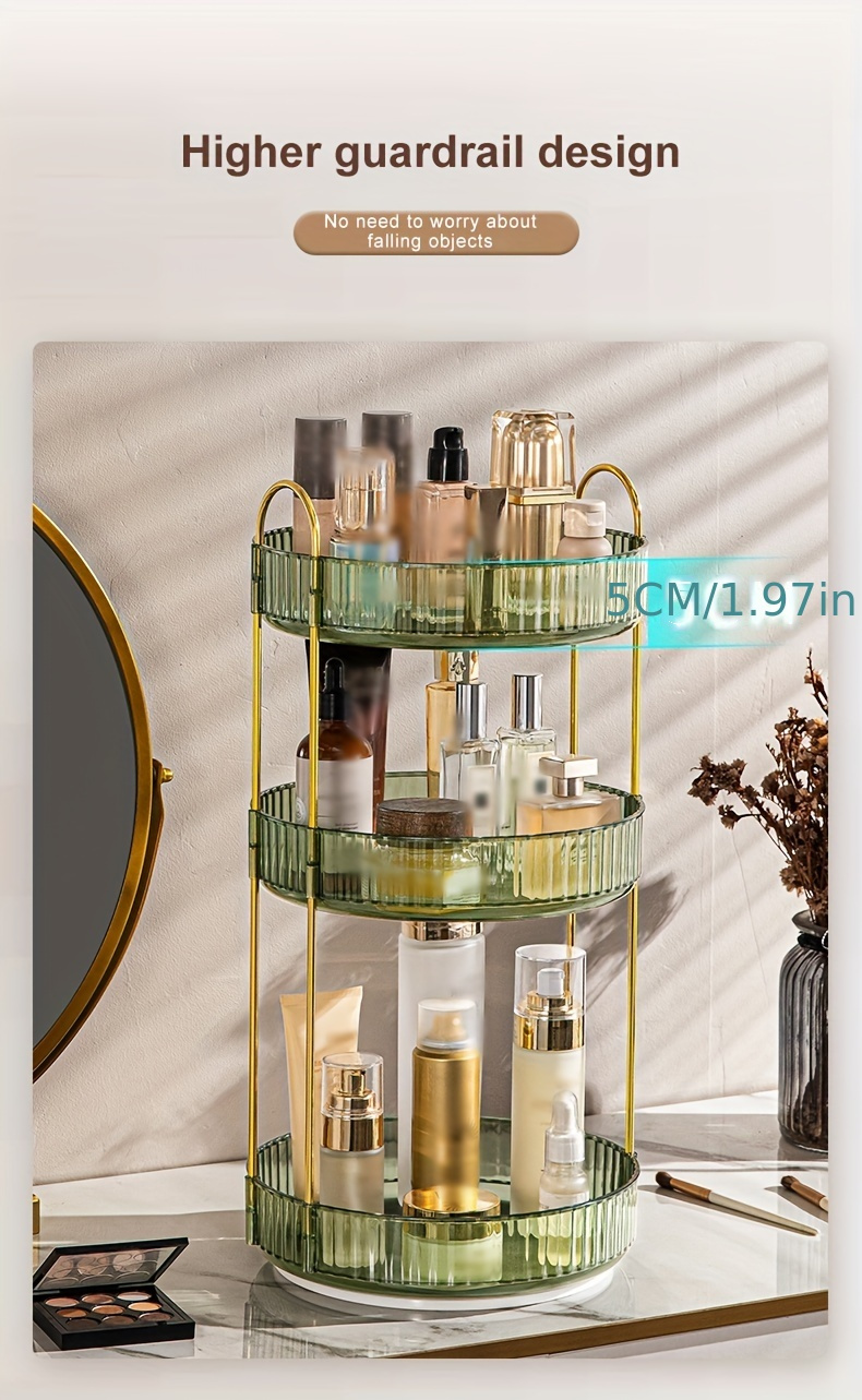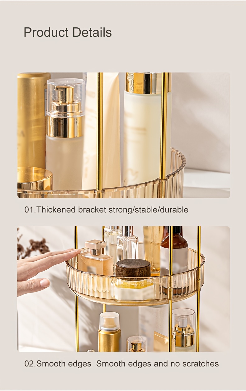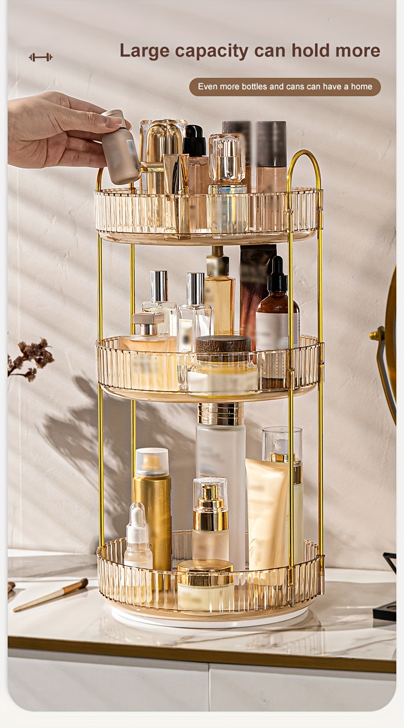 Luxury 3-Tier Rotating Vanity Organizer Rack, Freestanding Plastic Bathroom Shelf for Cosmetics, Perfumes, Skincare - Versatile Storage for Bathroom, Kitchen Countertop