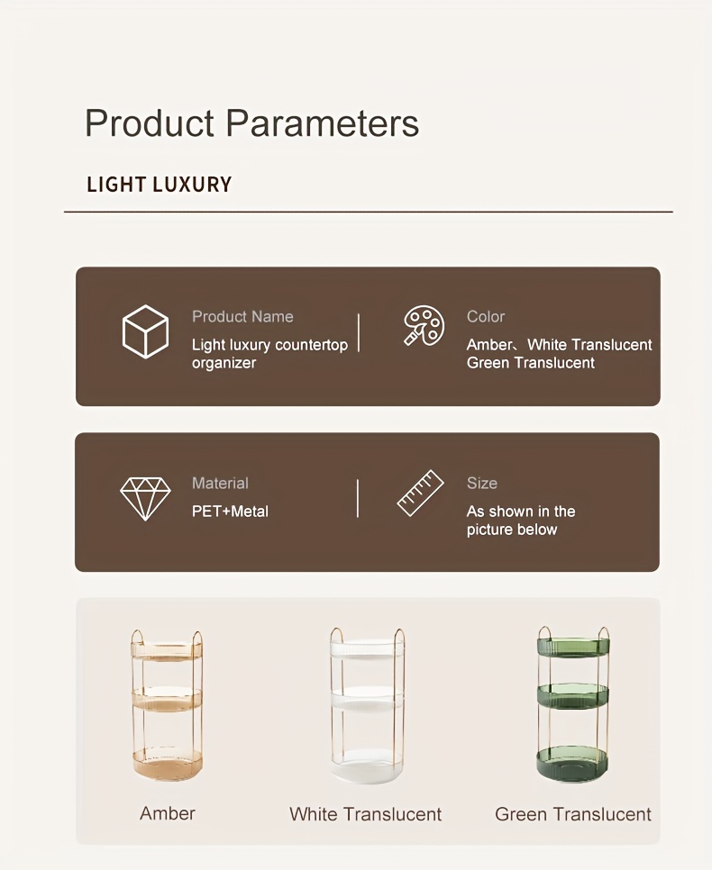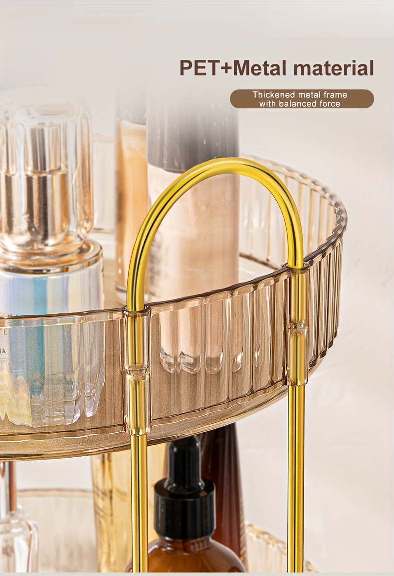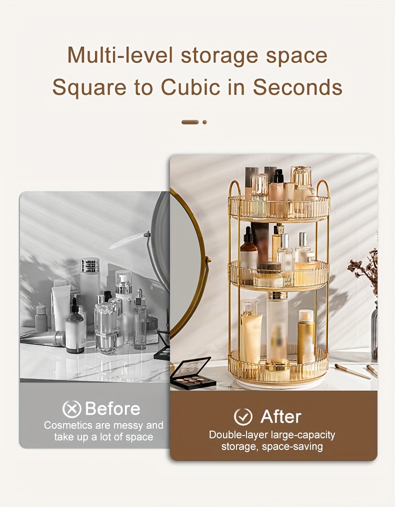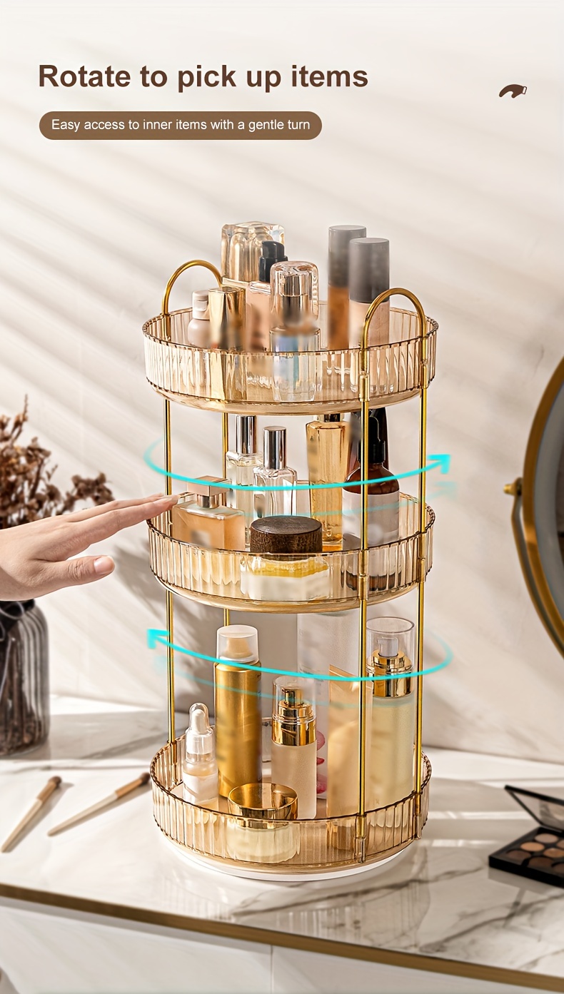 Luxury 3-Tier Rotating Vanity Organizer Rack, Freestanding Plastic Bathroom Shelf for Cosmetics, Perfumes, Skincare - Versatile Storage for Bathroom, Kitchen Countertop