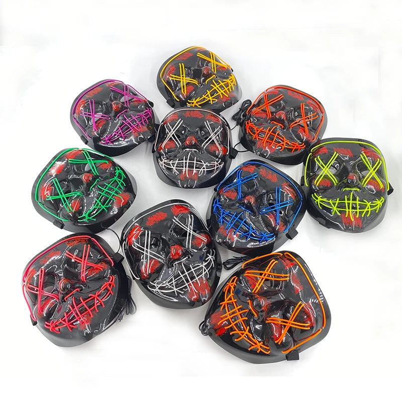 Masque d'horreur lettre V d'halloween et gants colorés, masque lumineux effrayant sans fil pour hommes et femmes, fournitures de costumes de fête de Festival