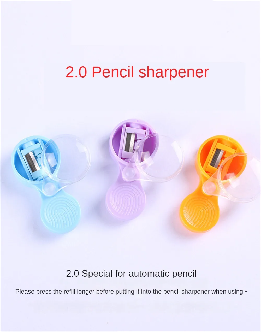 2.Lors de l'utilisation, fermez le couvercle et tournez le crayon, les copeaux du stylo ne tomberont pas et il n'est pas facile de tacher les mains des enfants.