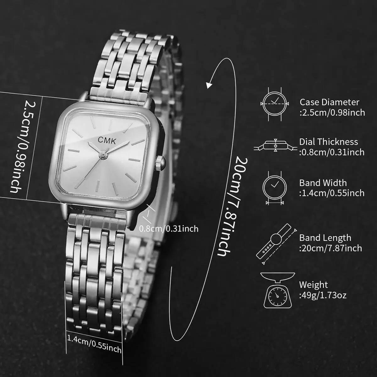 Longueur du bracelet de montre : environ 200 mm.