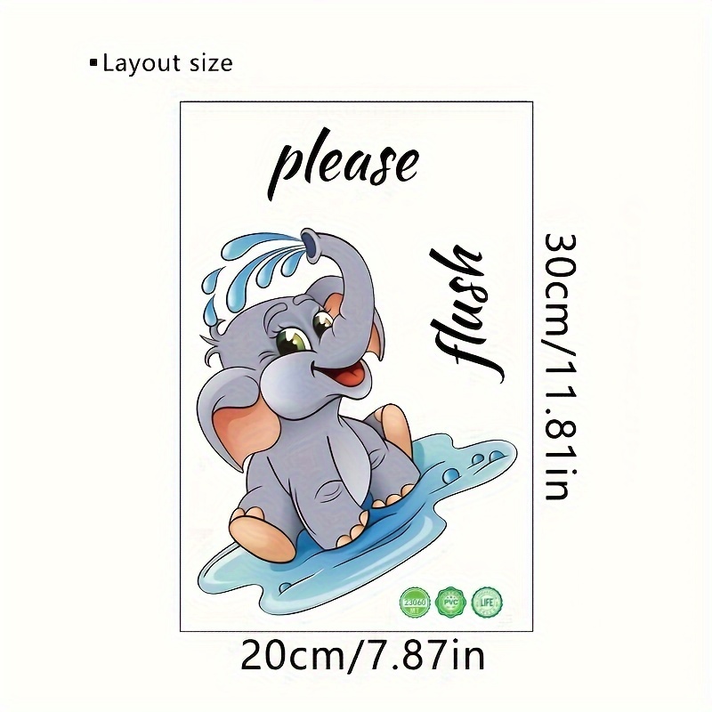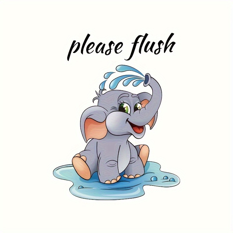 Modern Style Cartoon Elephant Wall Sticker 1pc PVC "Please Flush" Toilet Decor Self-Adhesive Bathroom Decal Animal Theme Wall Art, Easy to Install And Clean, Suitable for Home Decoration