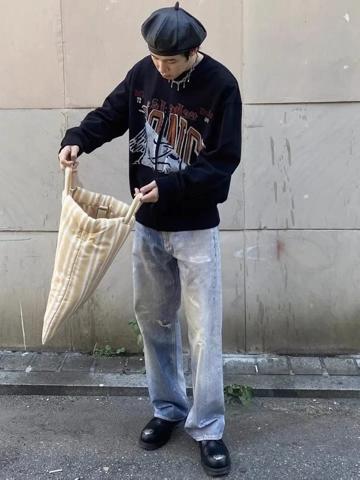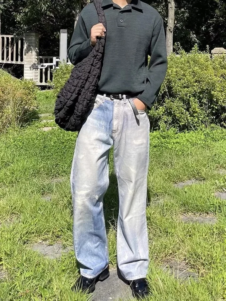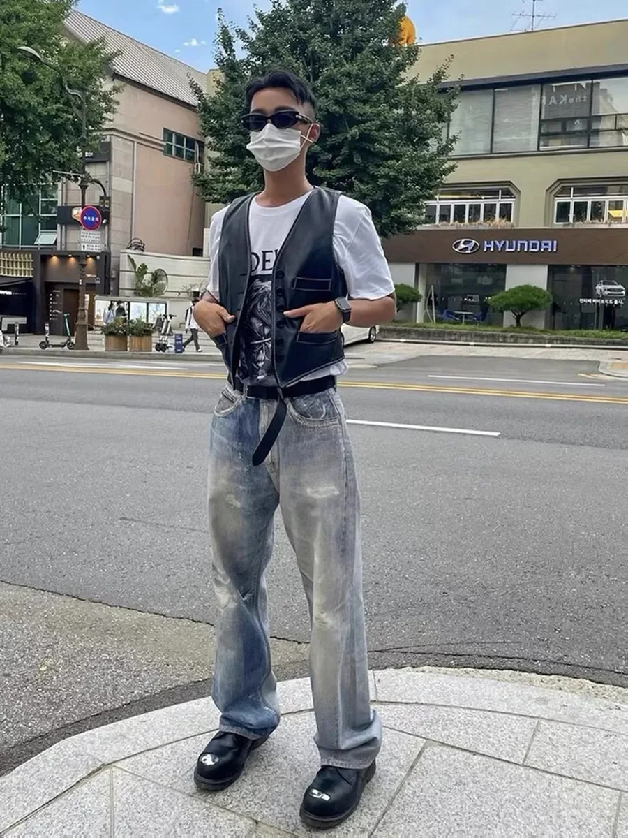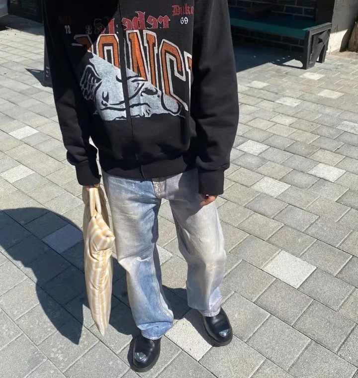 Notre héritage – jean imprimé bleu de qualité supérieure pour hommes, pantalon ample délavé, vêtements Y2k, pantalon en Denim décontracté