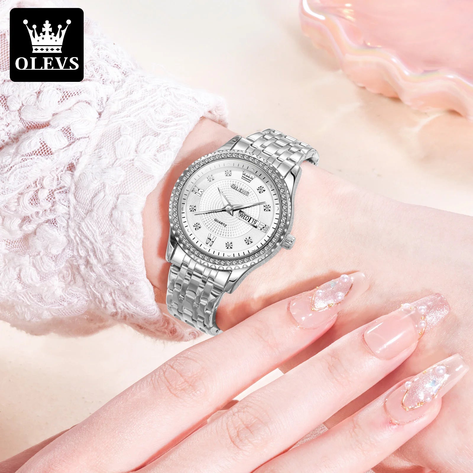 OLEVS-Montre à quartz étanche pour femme, montre-bracelet, calendrier, haute qualité, design élégant, luxe, tendance, original