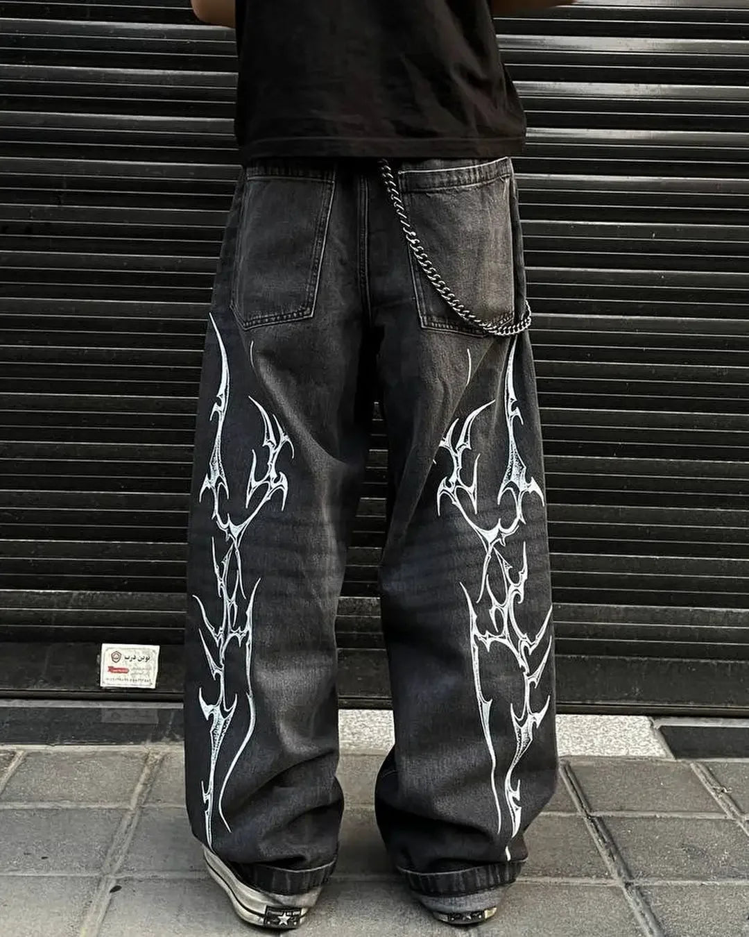Pantalon Patch populaire avec motif d'épine imprimé, jean déchiré gothique Harajuku pour hommes et femmes, pantalon de rue taille haute Y2k à jambes larges