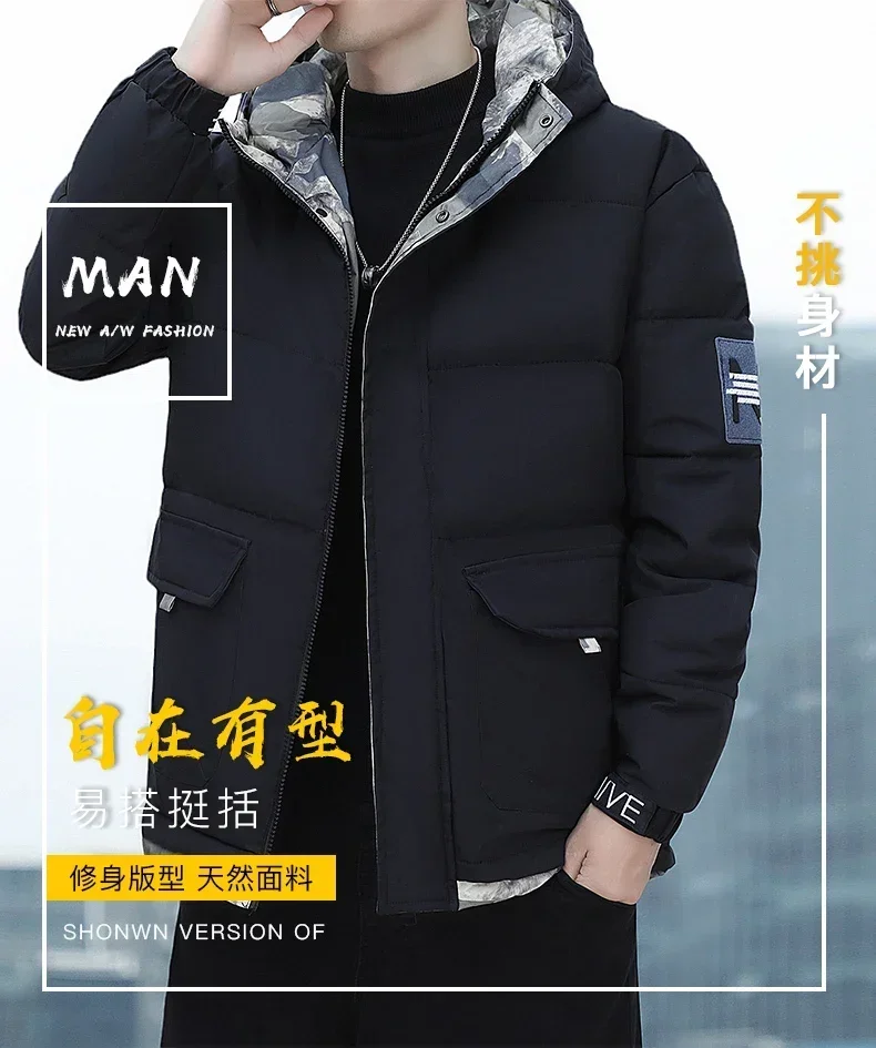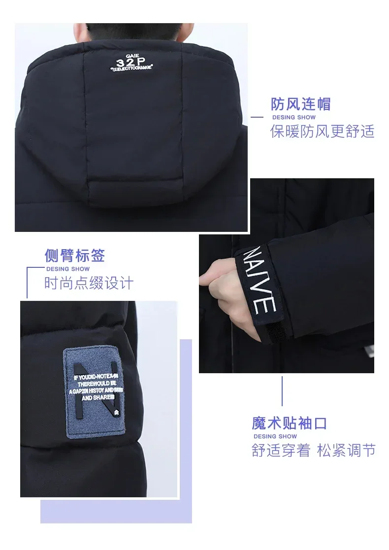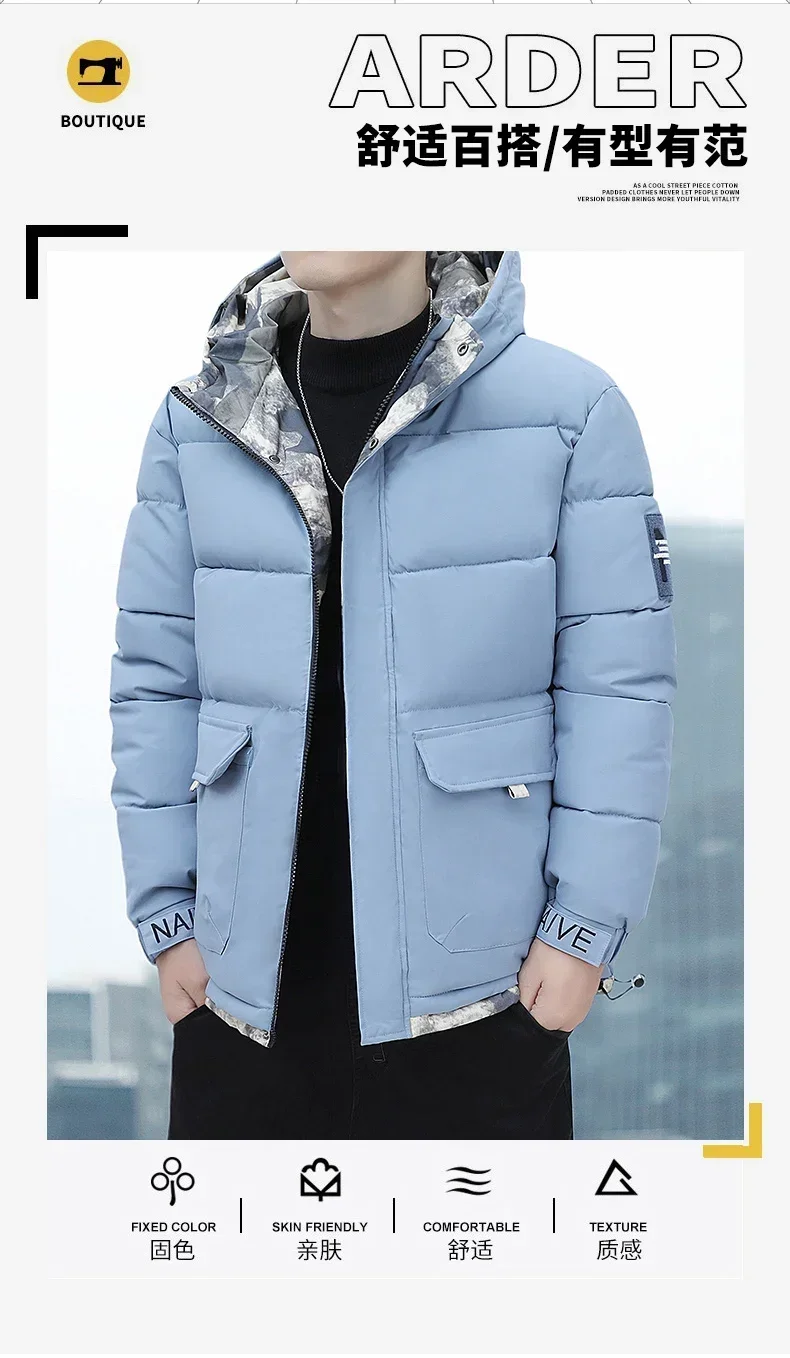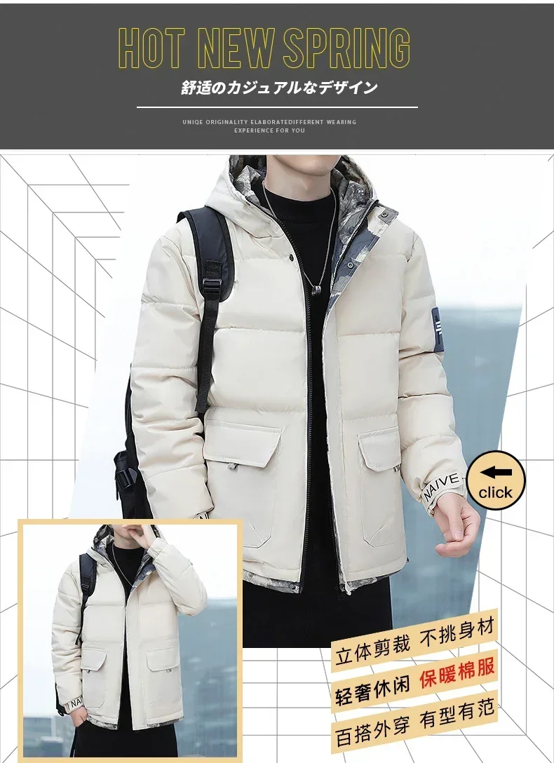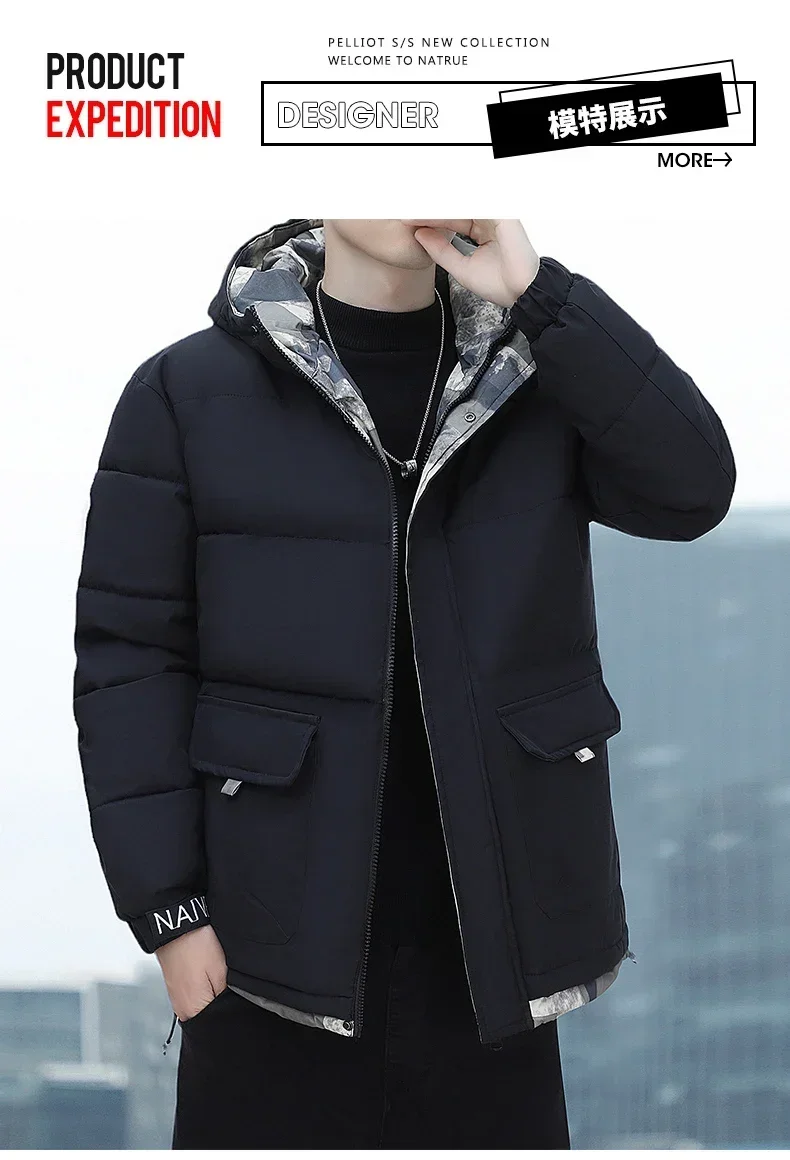 Parka coupe-vent à capuche pour hommes, veste chaude, pardessus monochromes, vêtements d'extérieur pour hommes, vêtements de neige pour documents, hiver, nouveau