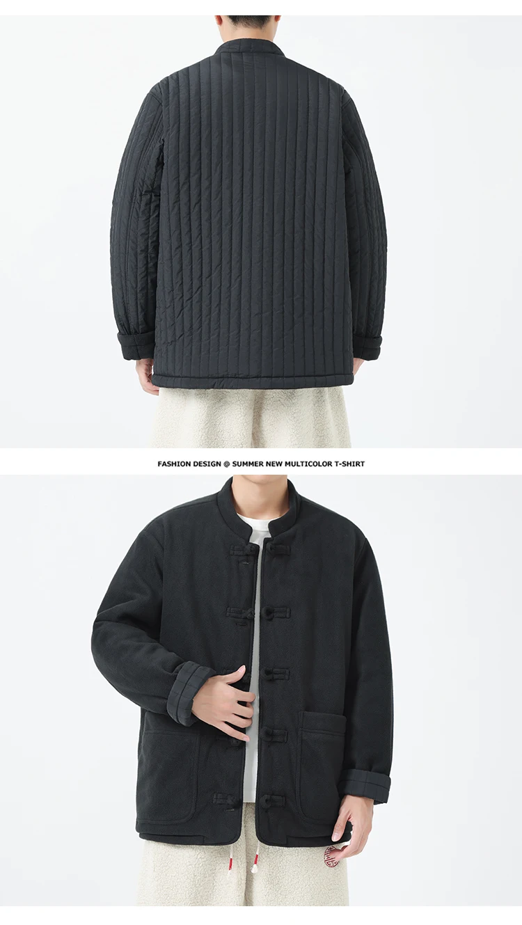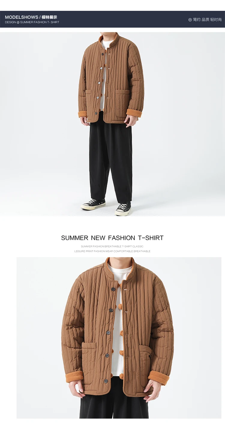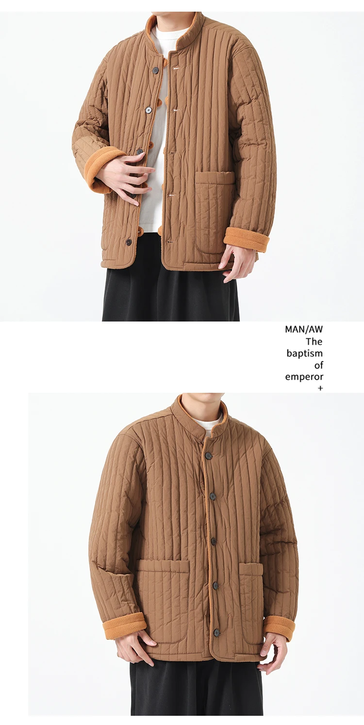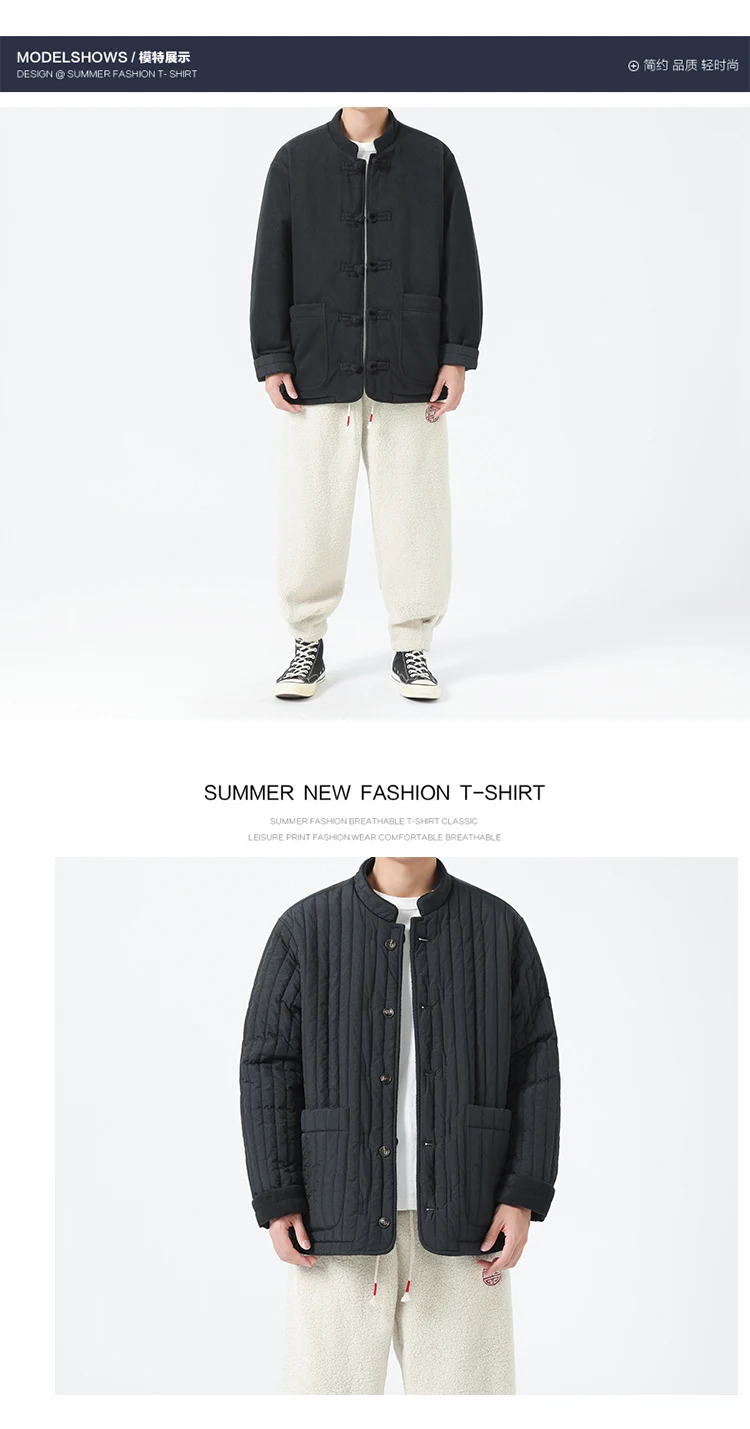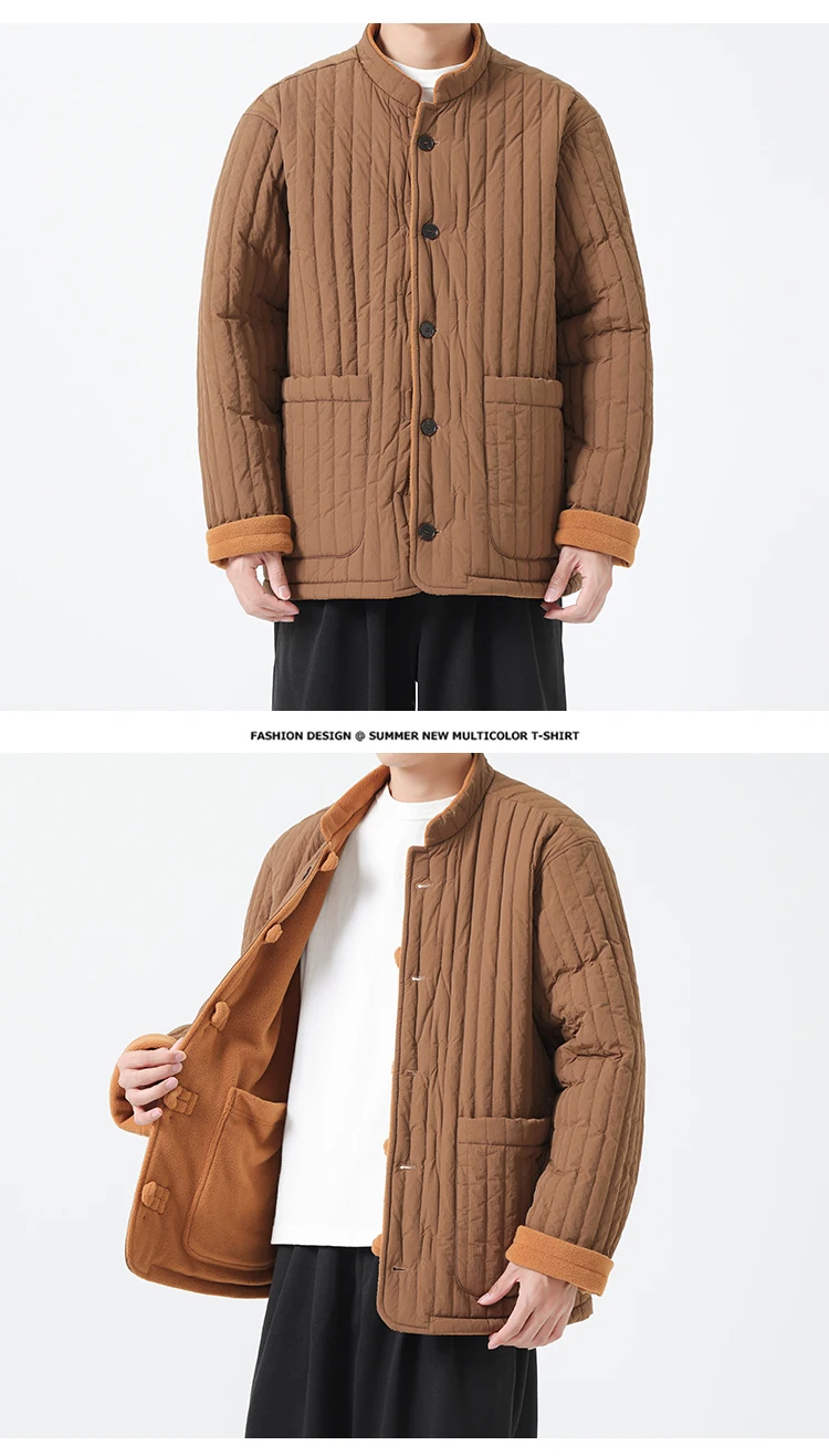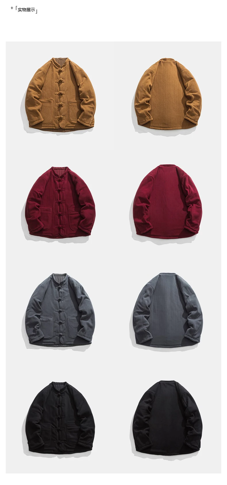Parka vintage en coton matelassé pour hommes, veste en peluche Harajuku, vêtements des deux côtés, document solide, col montant, style chinois