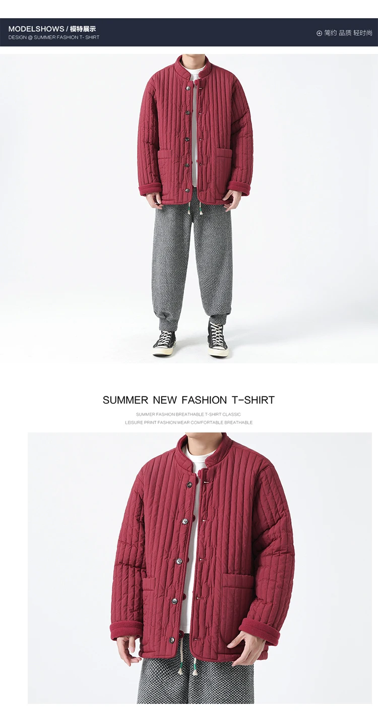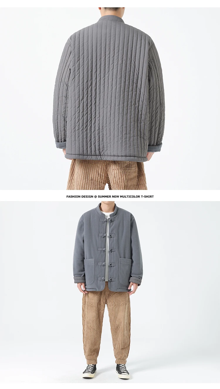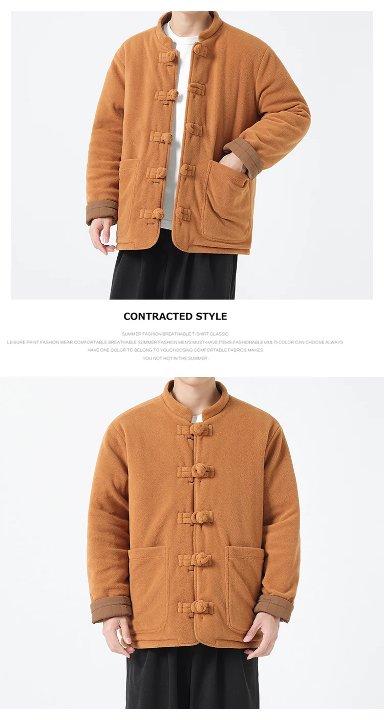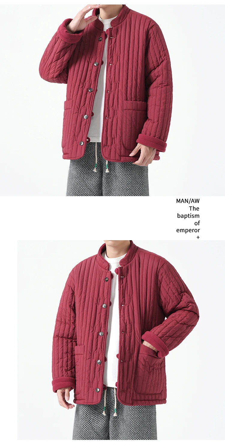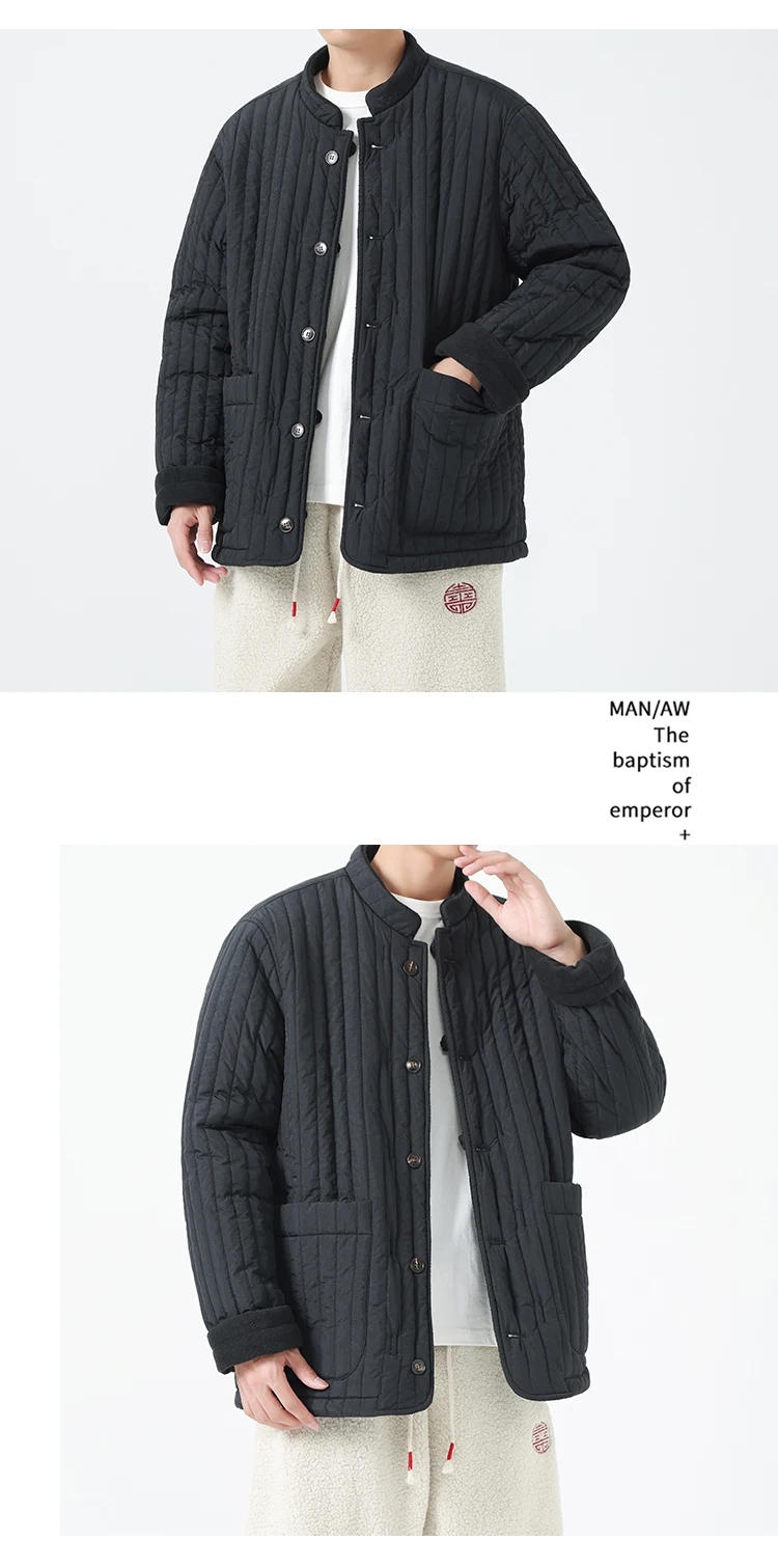 Parka vintage en coton matelassé pour hommes, veste en peluche Harajuku, vêtements des deux côtés, document solide, col montant, style chinois