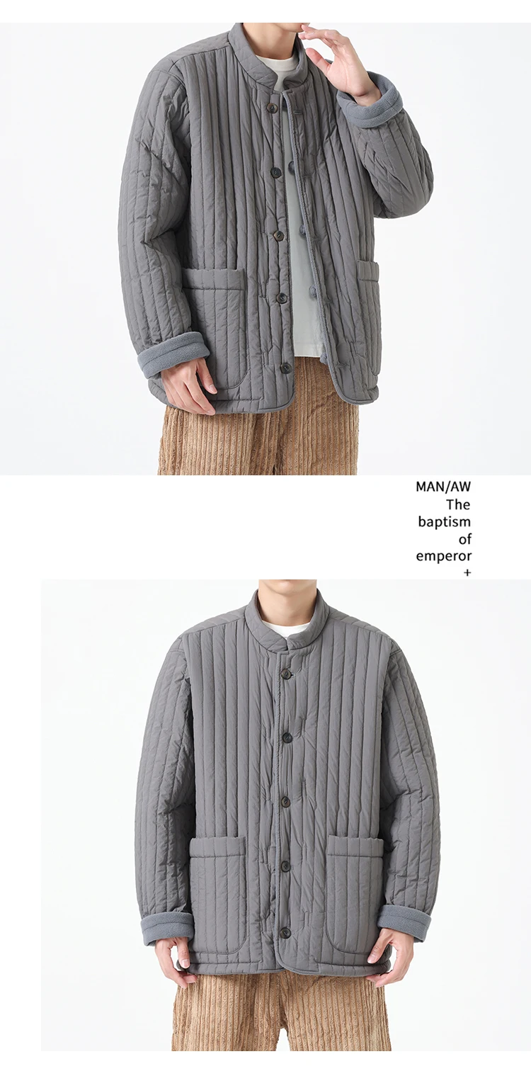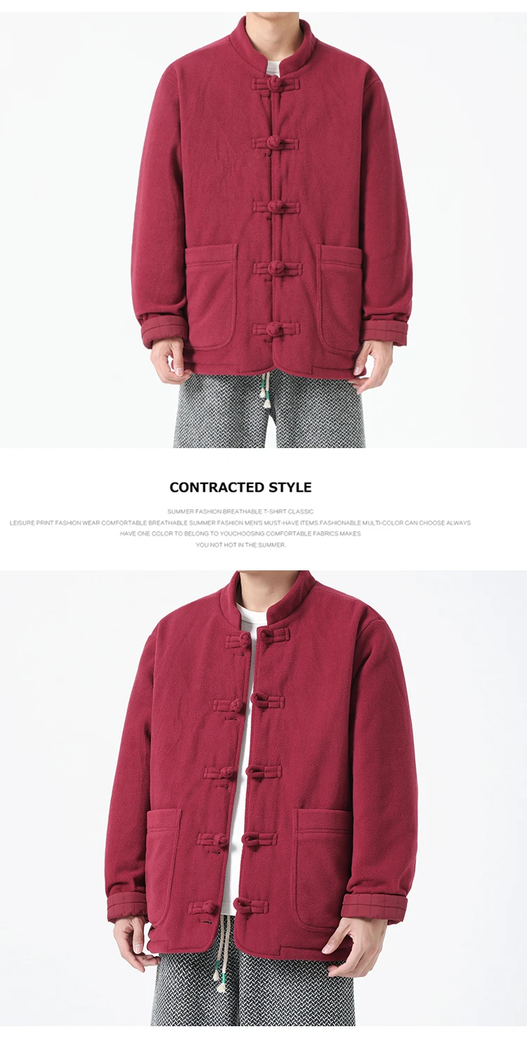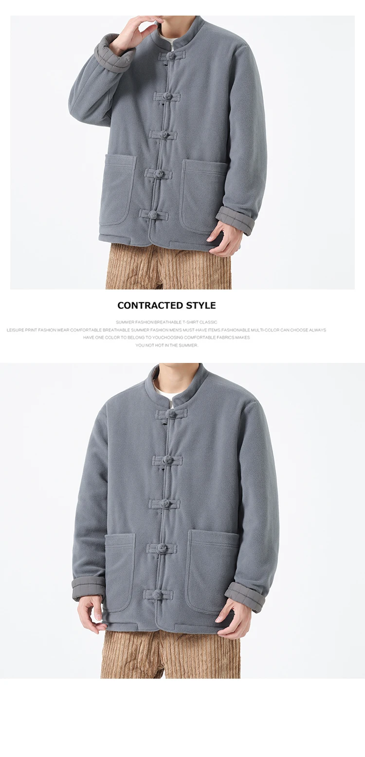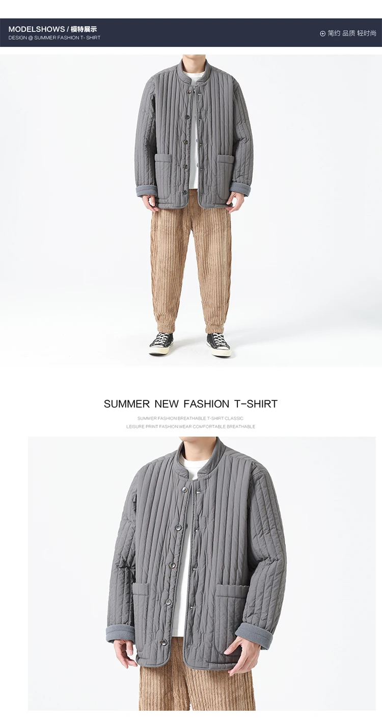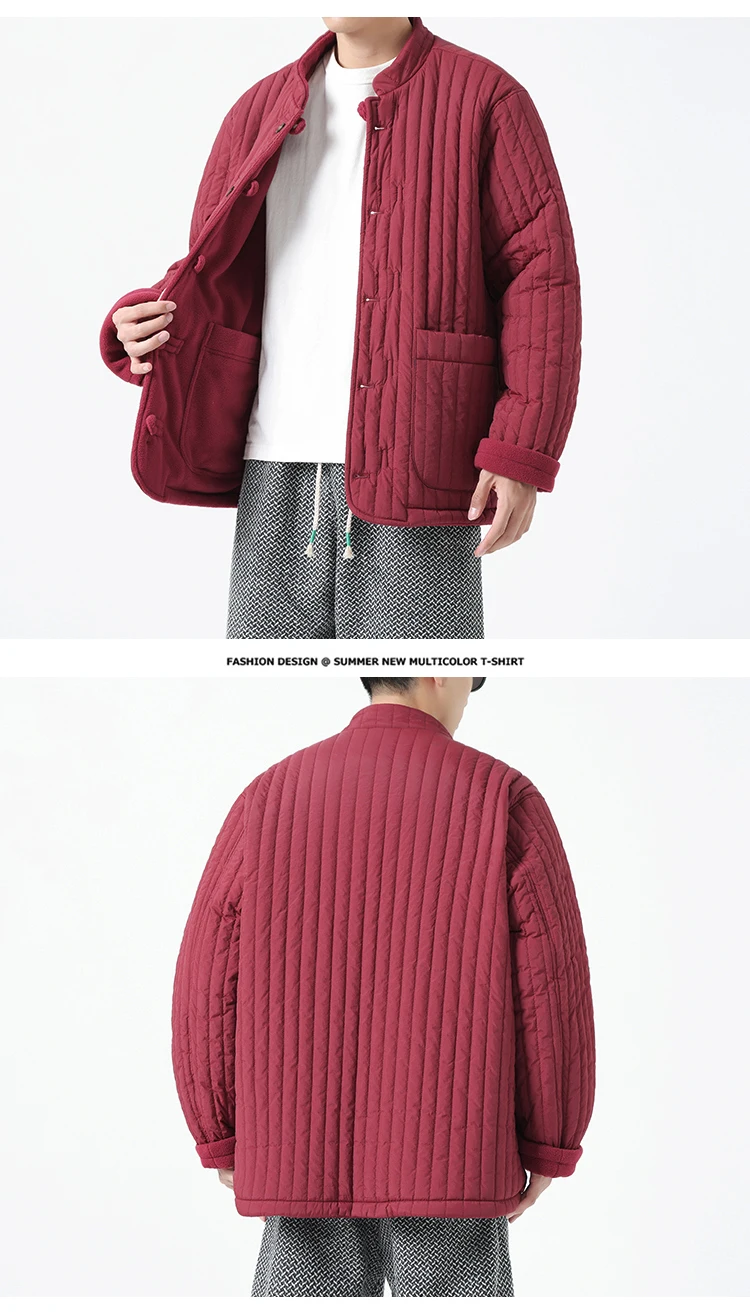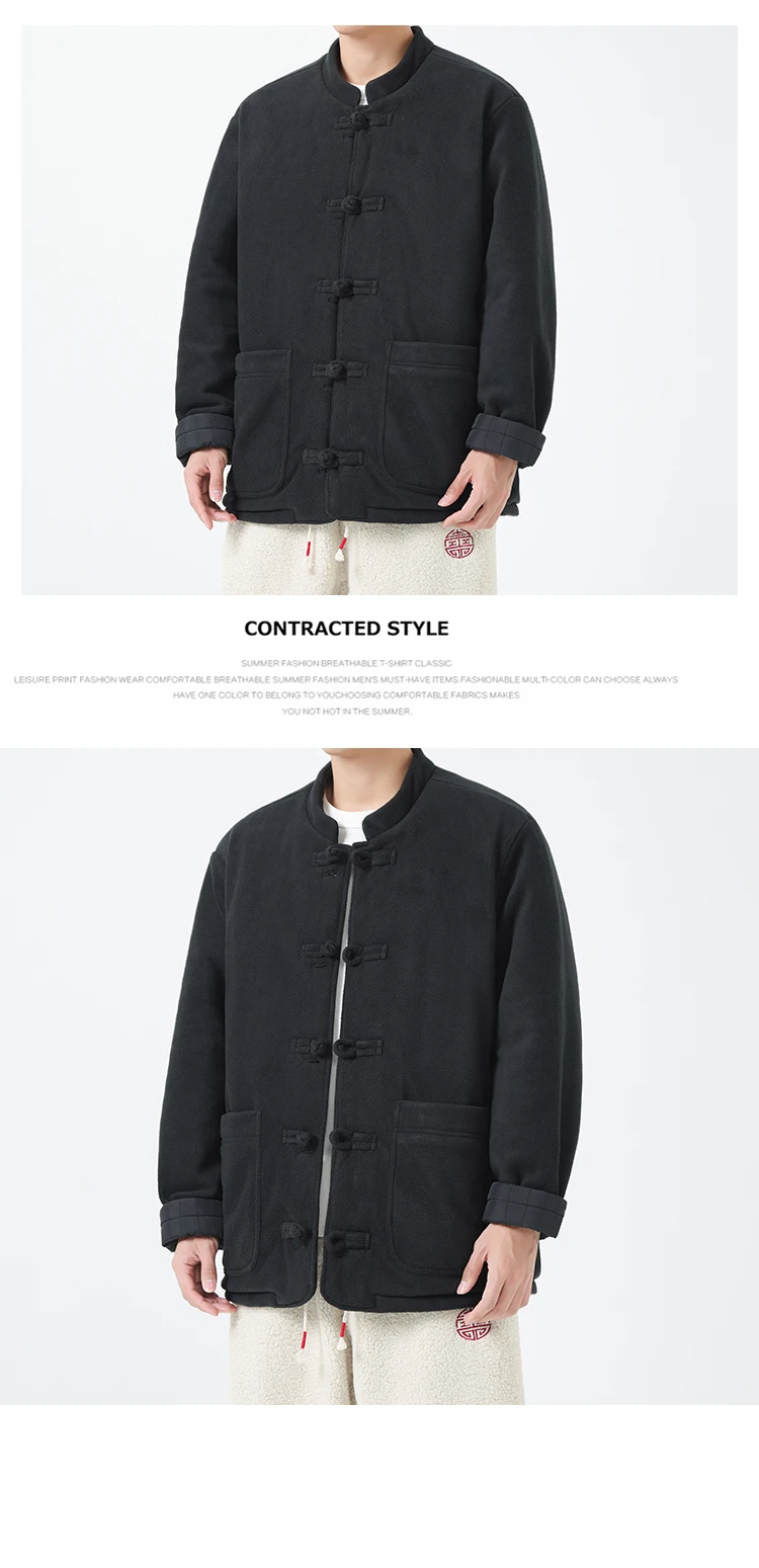 Parka vintage en coton matelassé pour hommes, veste en peluche Harajuku, vêtements des deux côtés, document solide, col montant, style chinois