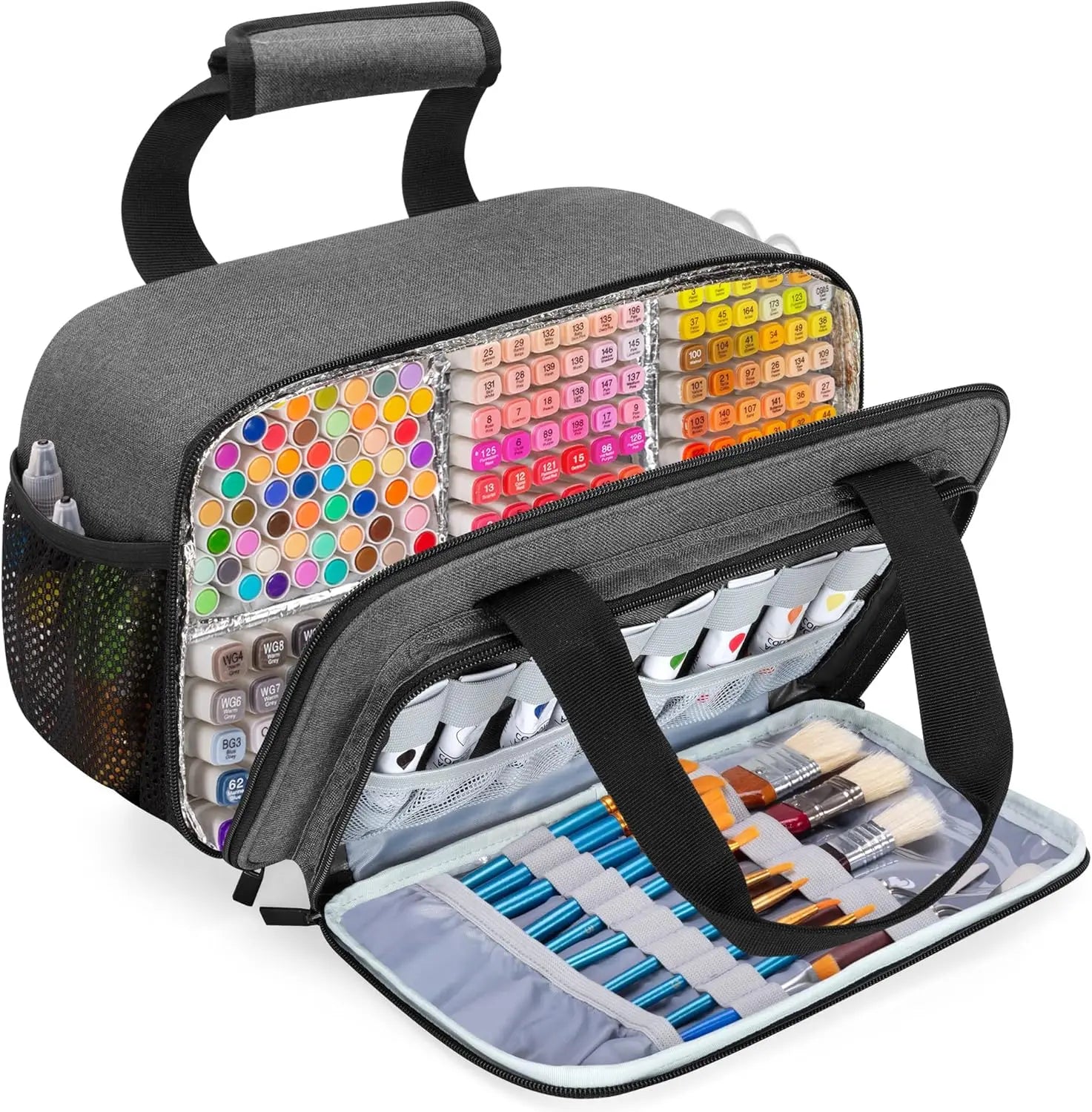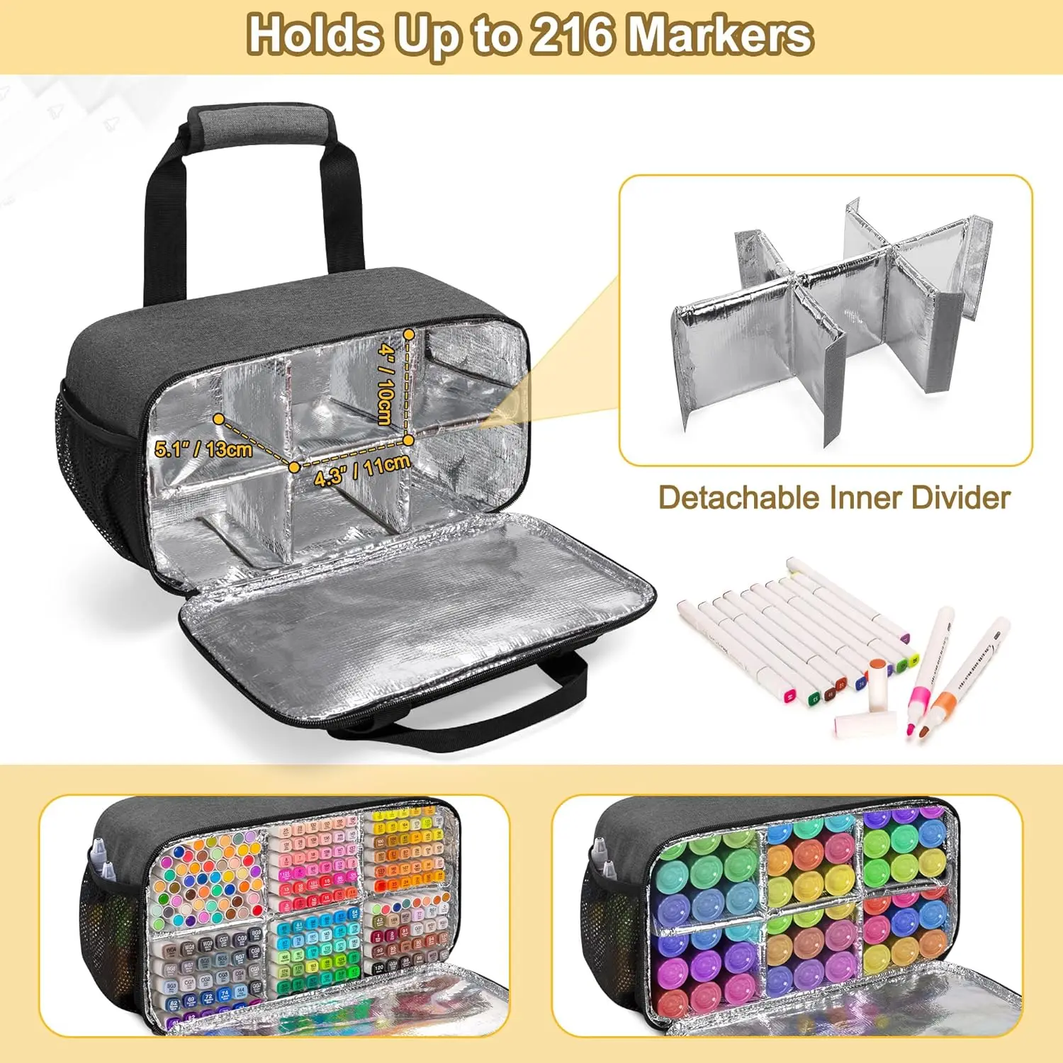 CAPACITÉ ARGE: Comporte une cloison détachable avec des panneaux creux; Divisez le compartiment principal en six parties (dimension intérieure de chaque partie: 4.3 "x5.1" x4 "); le sac de marqueur entier peut accueillir jusqu'à 216 marqueurs; Notez que la longueur des marqueurs ne dépasse pas 5.1"/13 cm