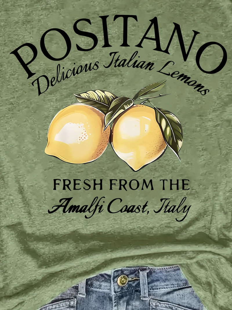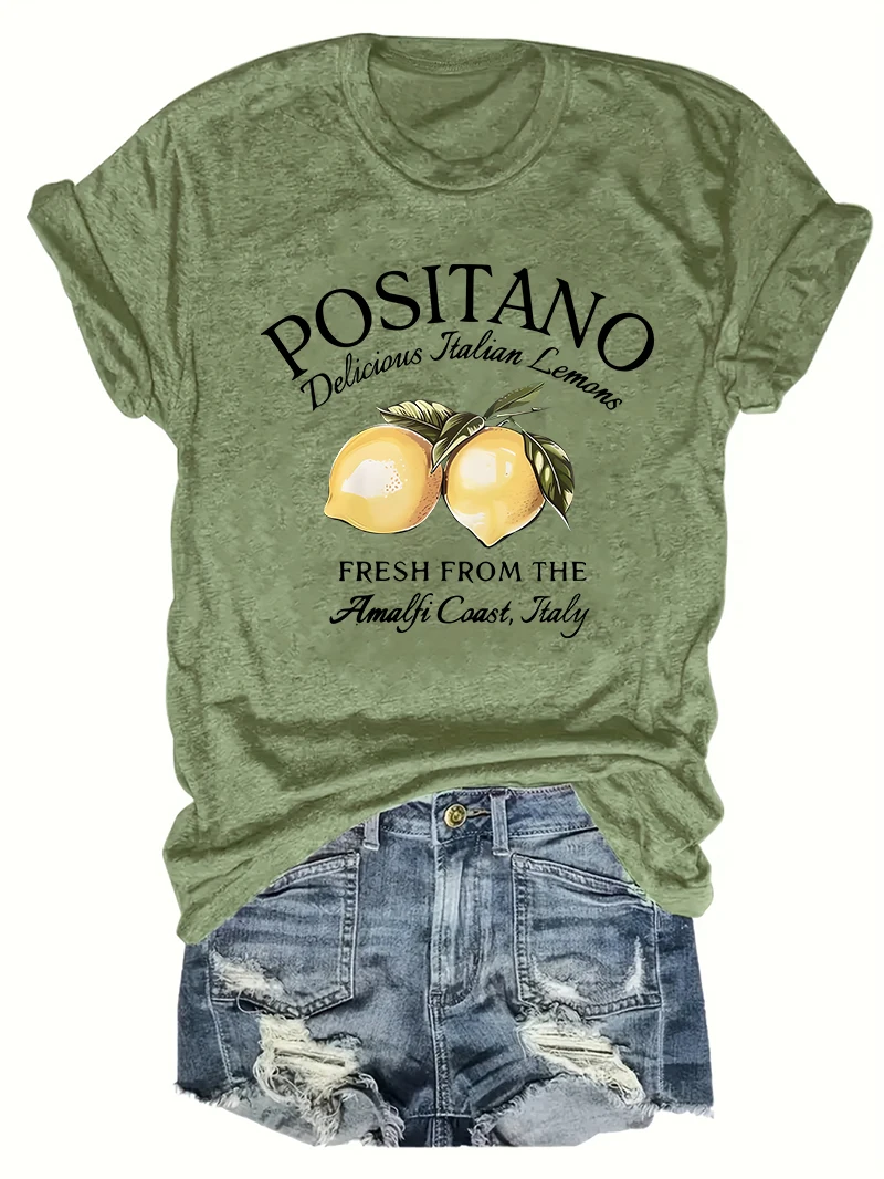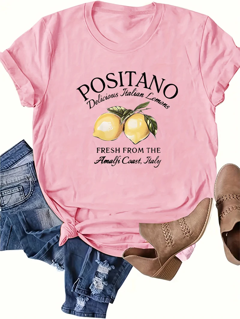 POSITANO lettre citron imprimé graphique femmes t-shirt à manches courtes col rond été décontracté hauts pour femmes vêtements
