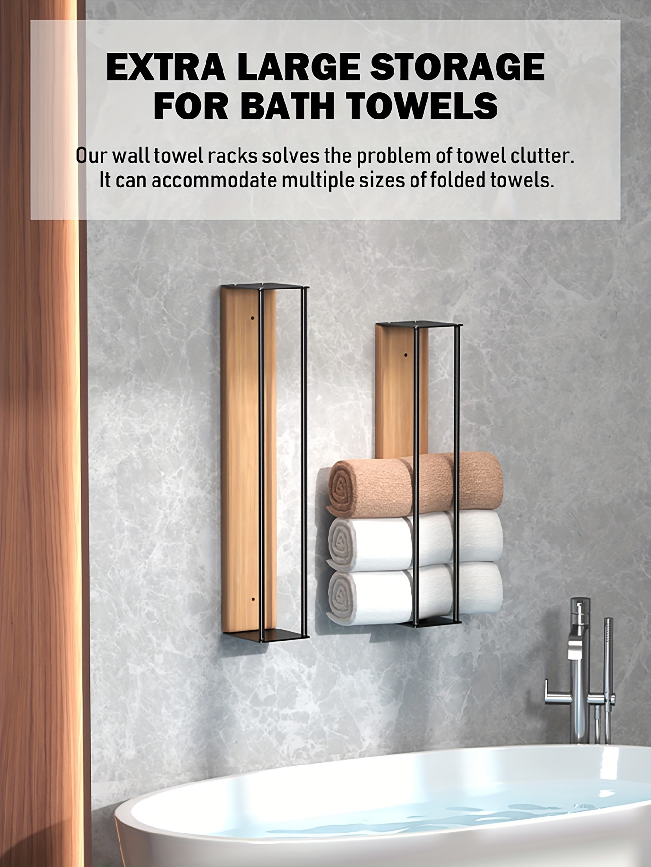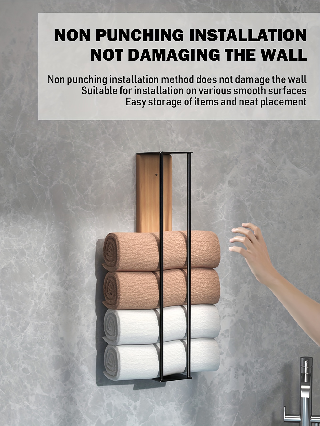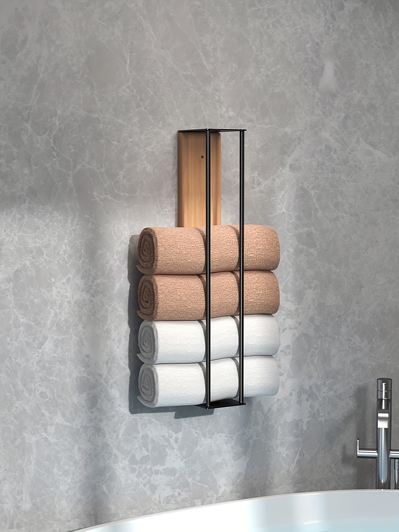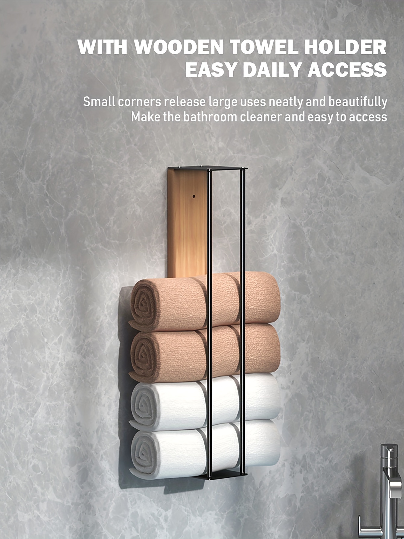 Rustic Wooden Panel Bathroom Towel Rack, Wall-Mounted Towel Holder for Rolled Towels, No Drilling Required, for Bath Towels, Hand Towels, Beach Towels, Bathroom Accessories, Autumn, Christmas Decor, Home Kitchen Supplies