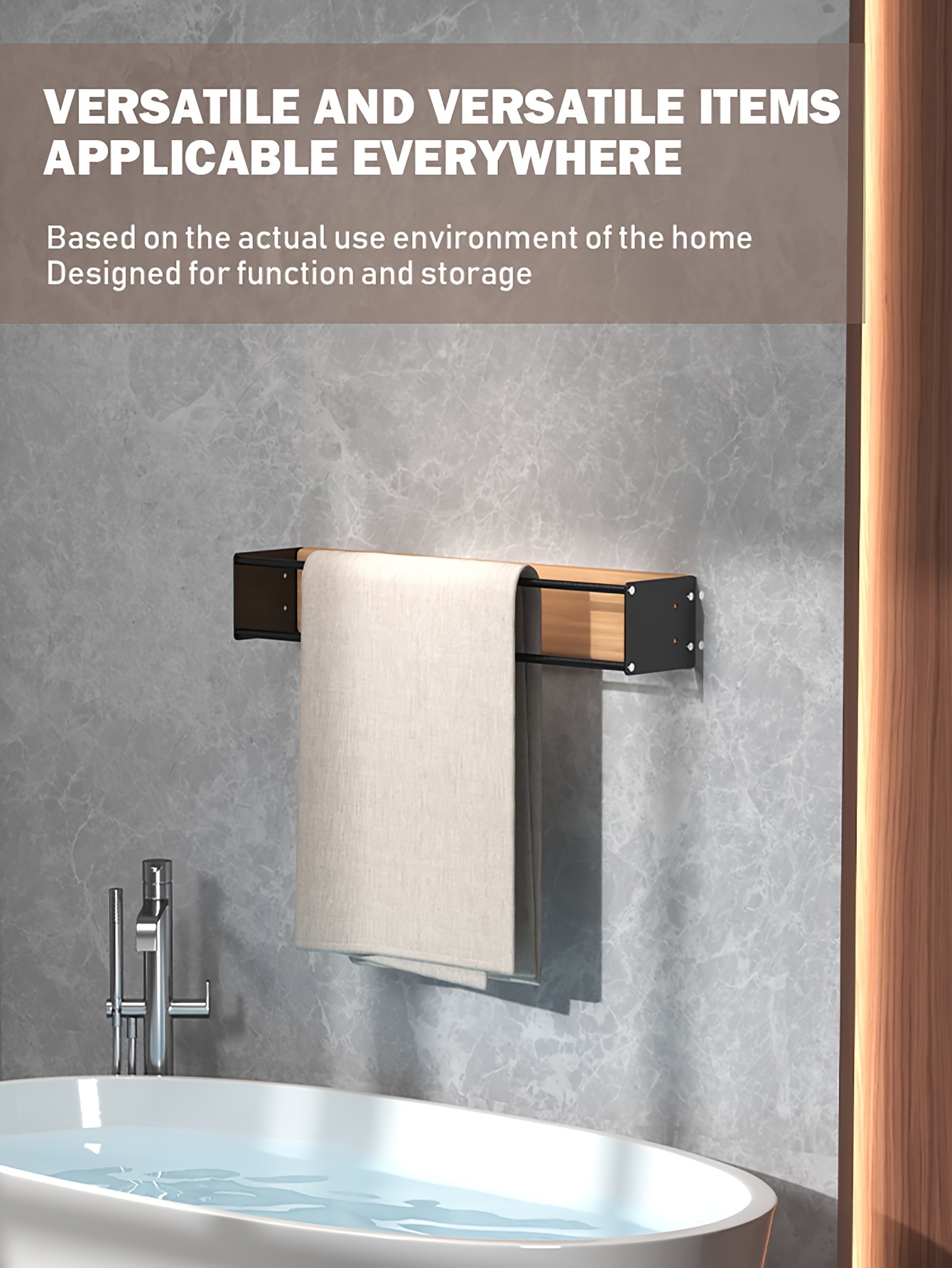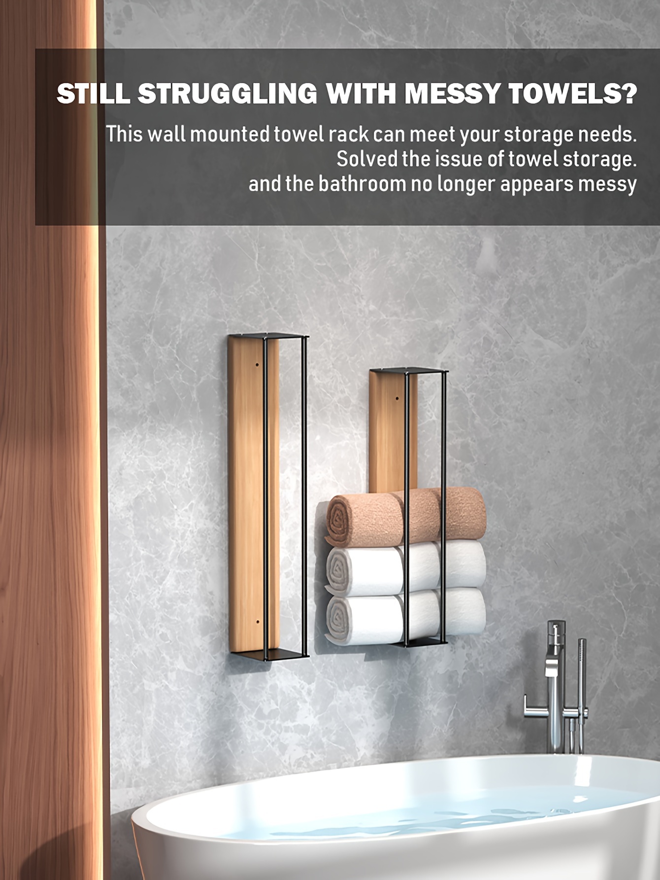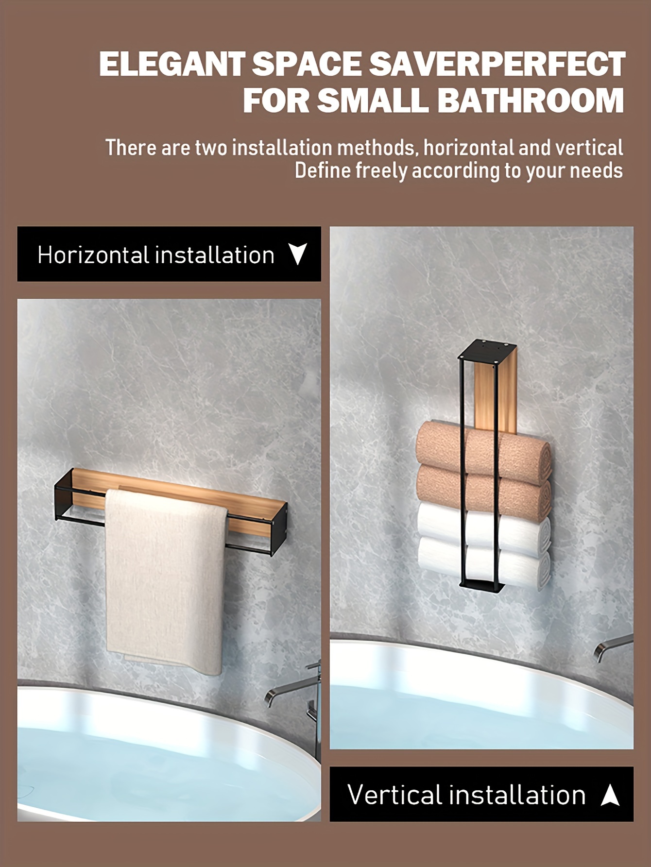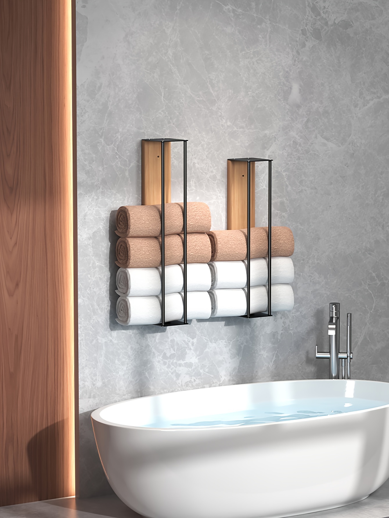 Rustic Wooden Panel Bathroom Towel Rack, Wall-Mounted Towel Holder for Rolled Towels, No Drilling Required, for Bath Towels, Hand Towels, Beach Towels, Bathroom Accessories, Autumn, Christmas Decor, Home Kitchen Supplies
