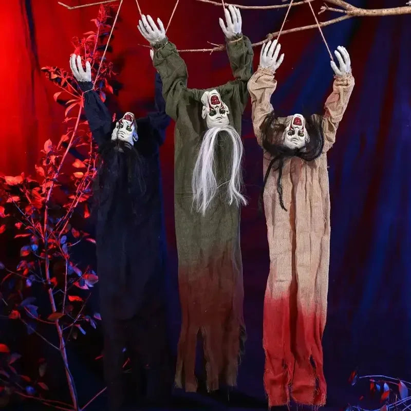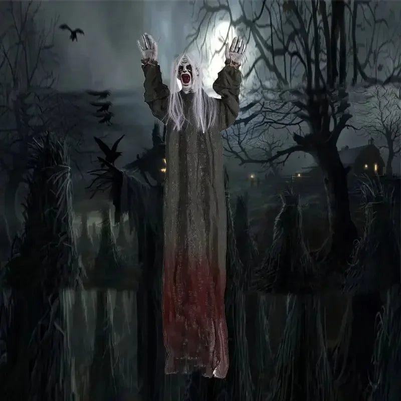 Sac d'horreur d'Halloween avec cheveux blancs, fantôme sanglant, globe oculaire, dreadlocks face, cheveux longs, sanglant, mal rampant