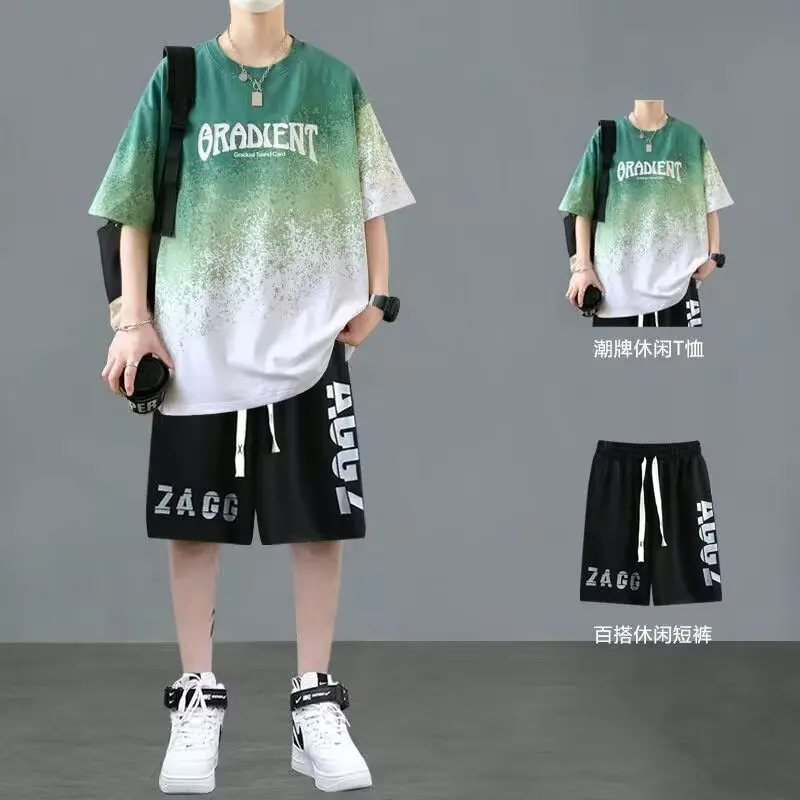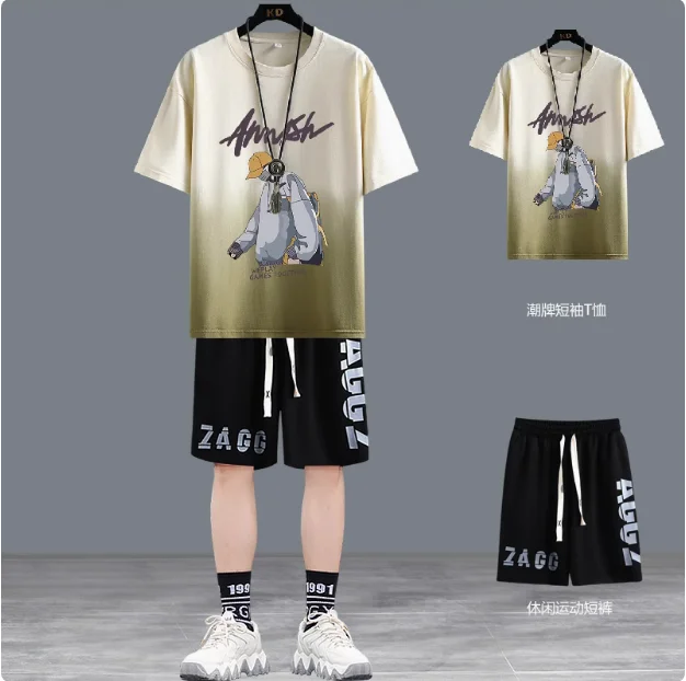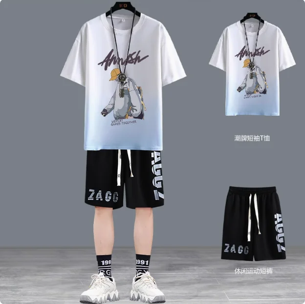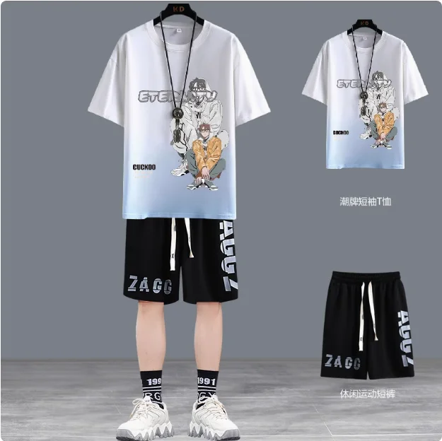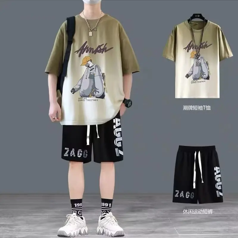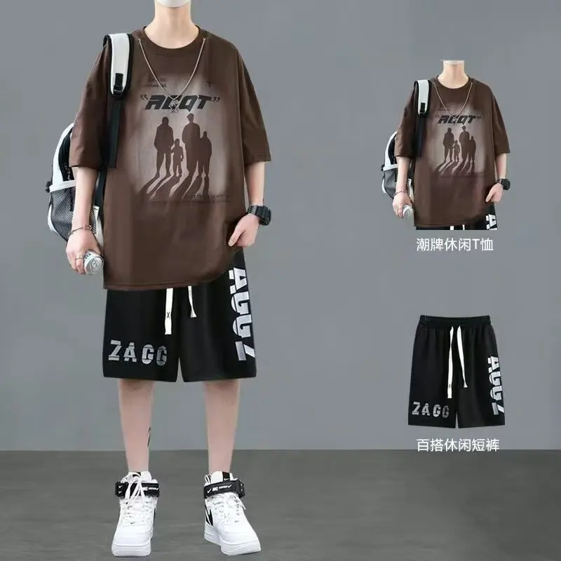Short hommes costume été Joggers ensemble mode coréenne graphique T-shirt multi-poches Cargo pantalon 2 pièces ensemble hommes survêtements 2025 nouveau