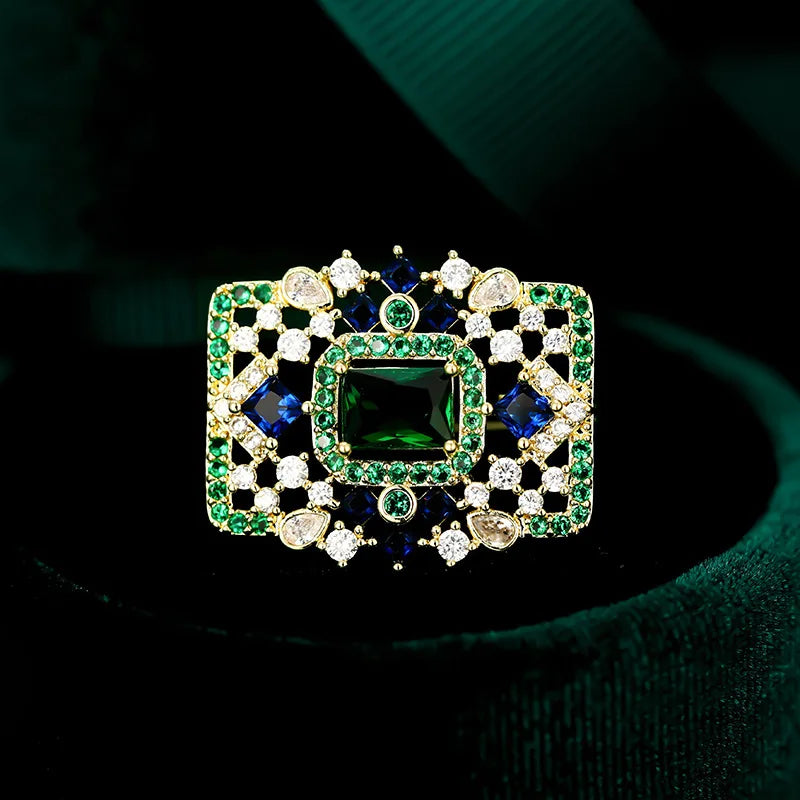 SUYU Imitation jadéite rectangulaire couleur correspondant cubique zircone broche vêtements accessoires fixation accessoires broches