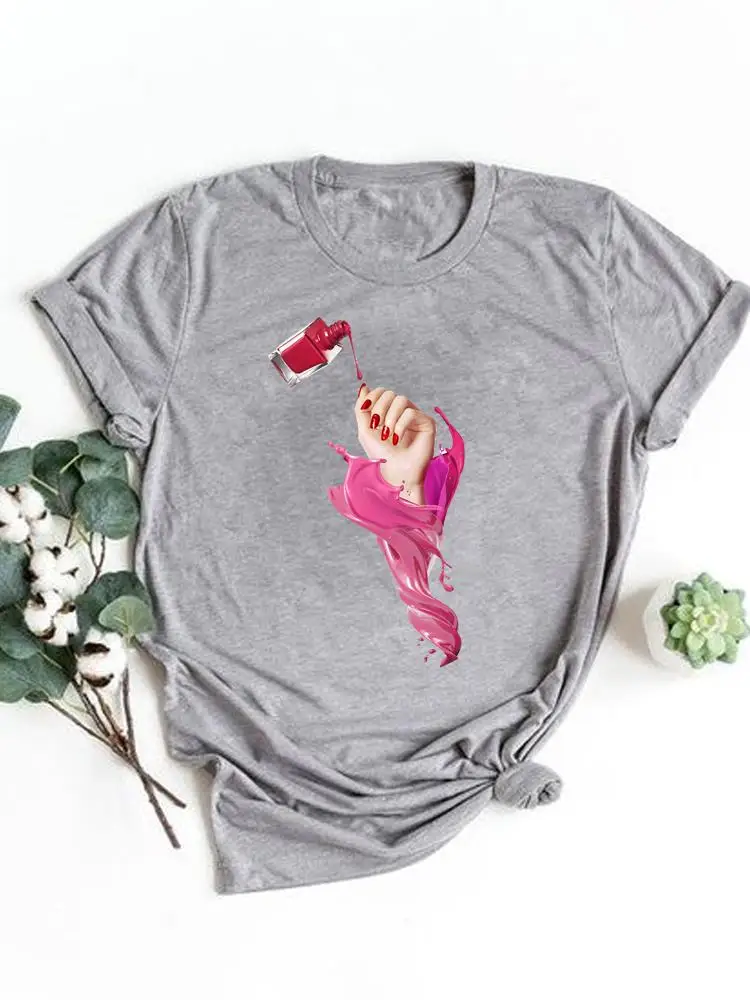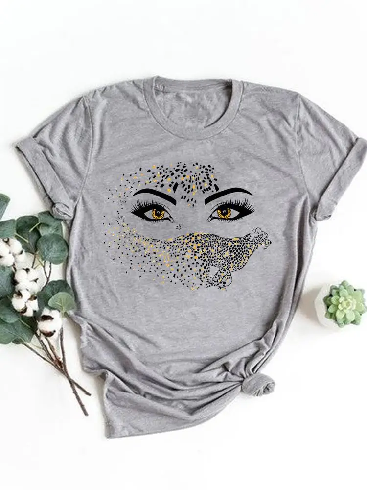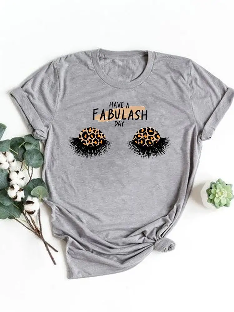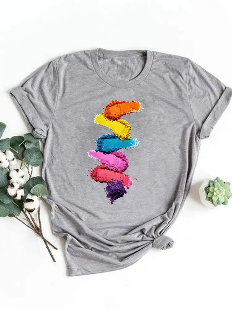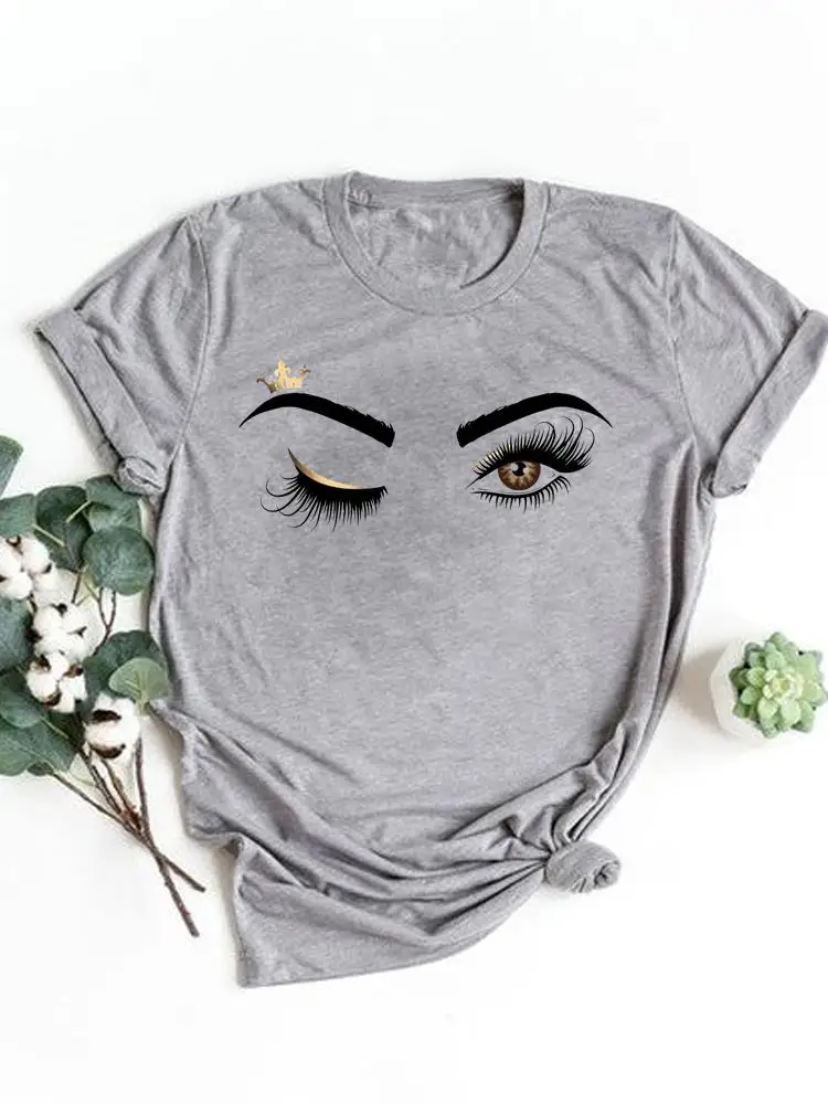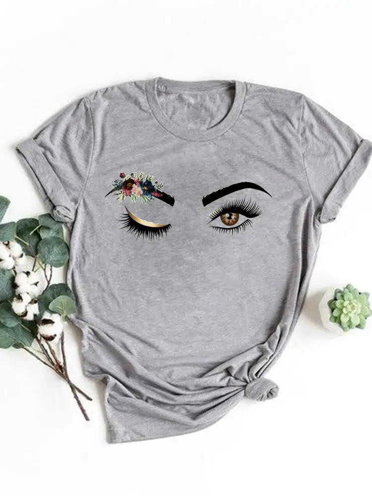 T-shirt manches courtes pour femmes, vêtement basique, haut d'été, maquillage rayé, joli et mignon, imprimé, à la mode, graphique