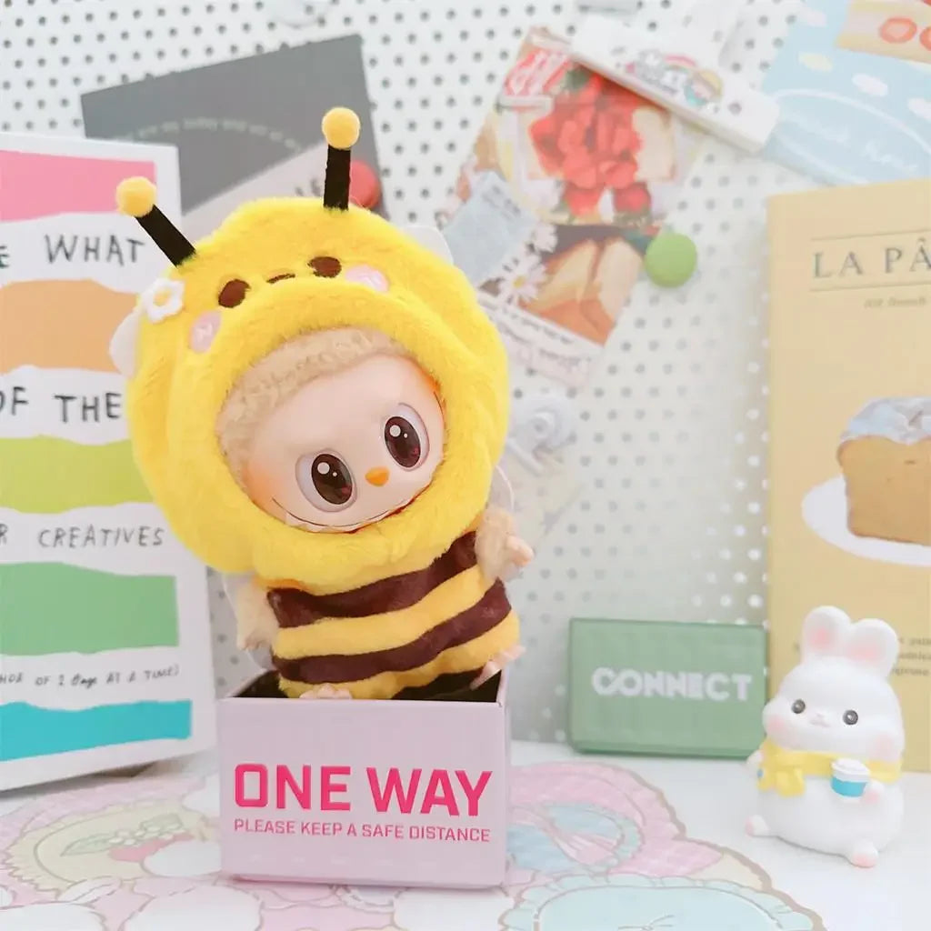 Tenue de fête assise labubu V1 V2 de 17cm, vêtements en vinyle, poupée petite abeille, onesie, poupées mignonnes, accessoires de décoration