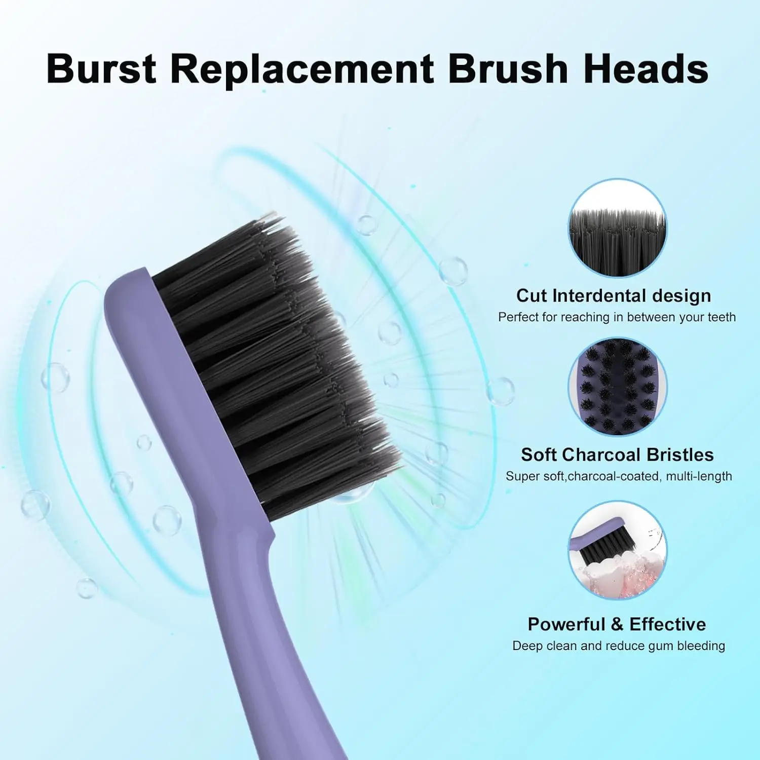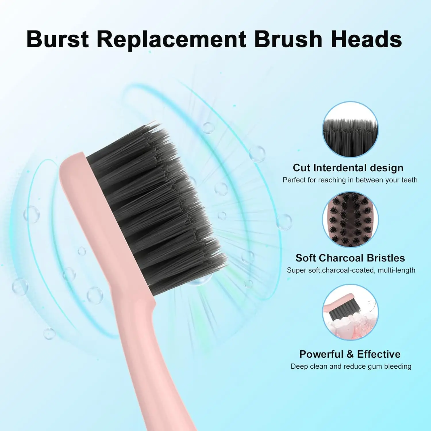 Têtes de brosse de rechange pour brosse à dents électrique sonique originale Burst Pro, recharge de poils de charbon de bois souple avec capuchon anti-poussière, 10 pièces
