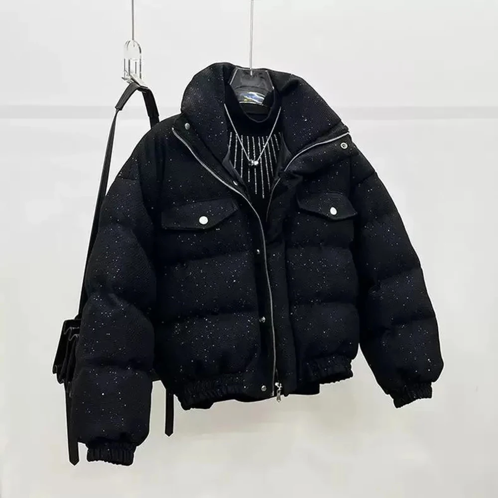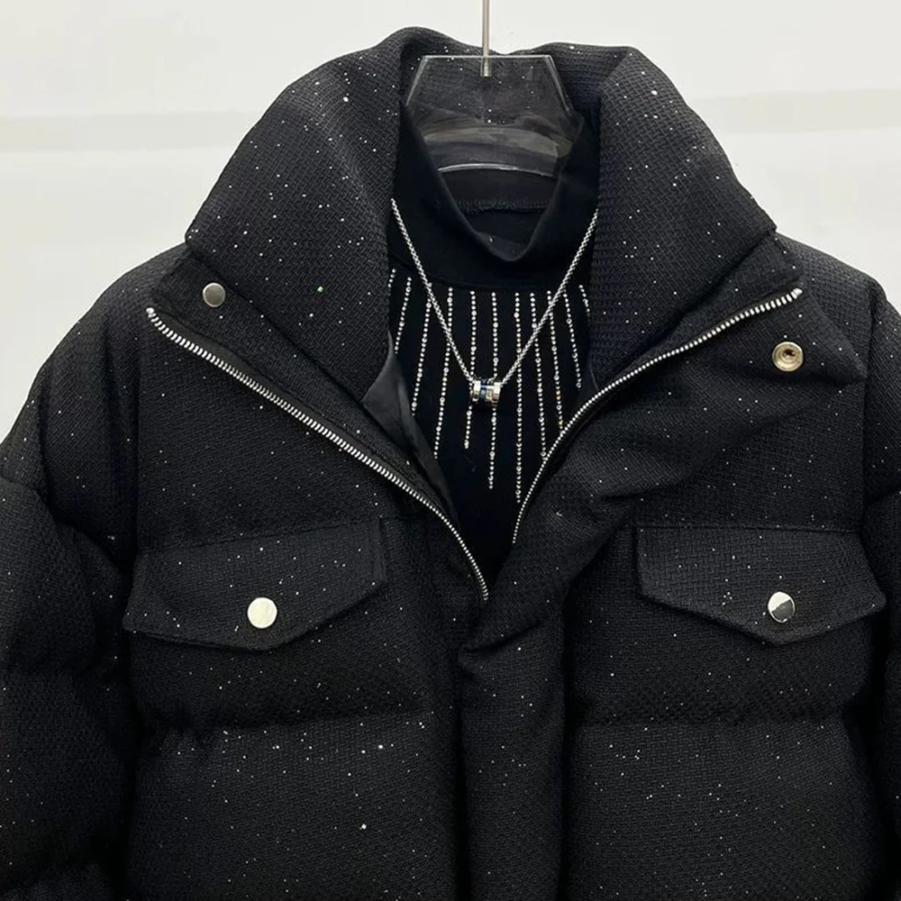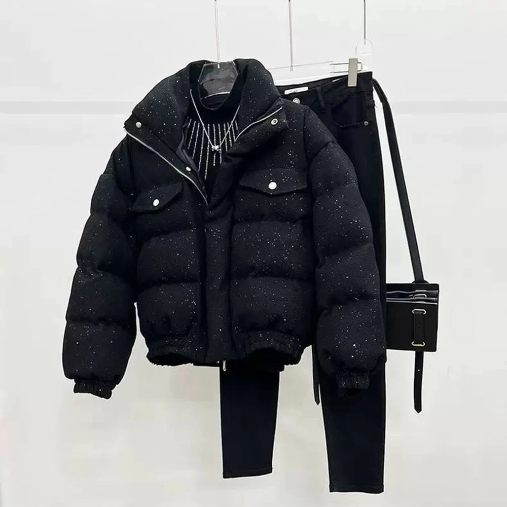 Veste en Coton Ciel Étoilé pour Homme, Col Montant, Carillon Épais, Décontracté, Chaud, Court, Haut de Gamme, Hiver