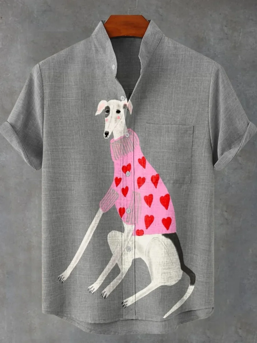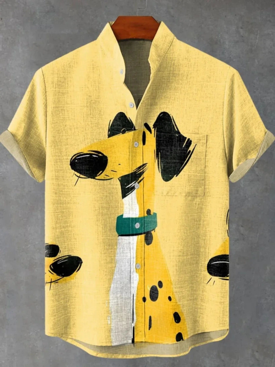2025 hommes décontracté mode nouvelle chemise en lin Art imprimé chien de compagnie motif chemises mode décontracté et confortable hommes chemise unie