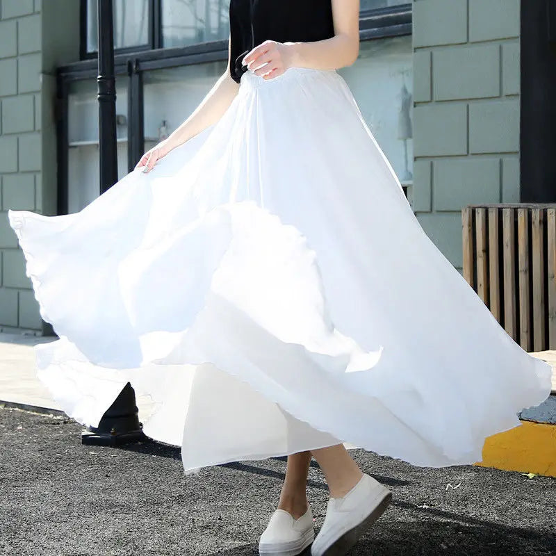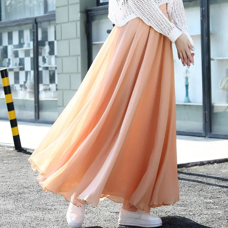 2025 printemps jupe 3 couches en mousseline de soie jupes longues pour femmes élégant décontracté taille haute Boho plage Maxi jupes Saias Femme 80/90/100 cm