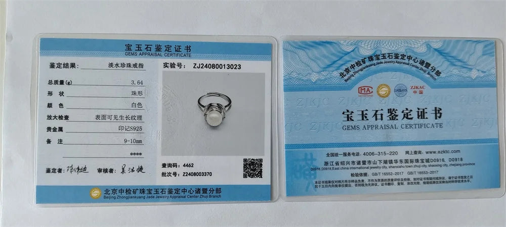 Bague en argent sterling 925 pour femme, grande perle naturelle, anneau en pierre réglable, perle blanche/rose/violette,