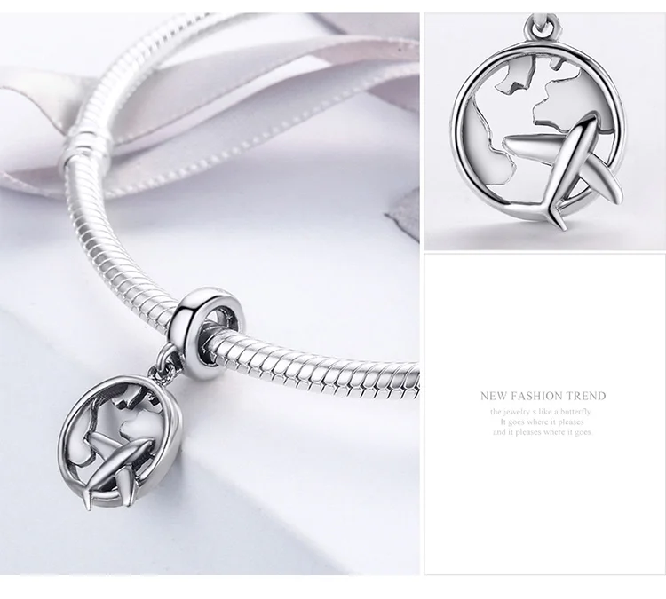 BAMOER authentique 925 en argent Sterling voyage carte de rêve et avion perles breloque ajustement bracelets porte-bonheur mode bijoux à bricoler soi-même S925 SCC242