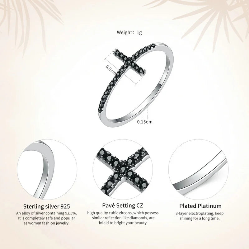 BAMOER – bagues en argent Sterling 925 en forme de croix pour femmes, bijoux en argent Sterling CZ noir clair, cadeau SCR067