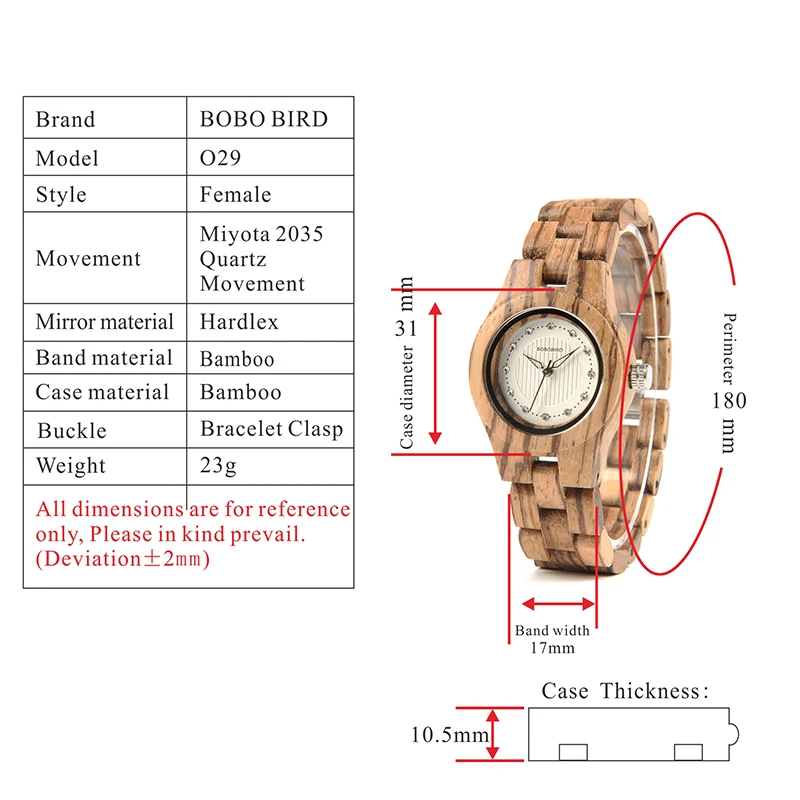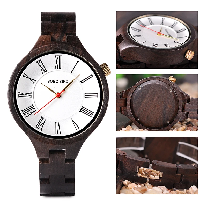 Chaque pièce de bois est unique, de sorte que chaque montre sera légèrement différente en couleur et en motif, continuez à attendre.