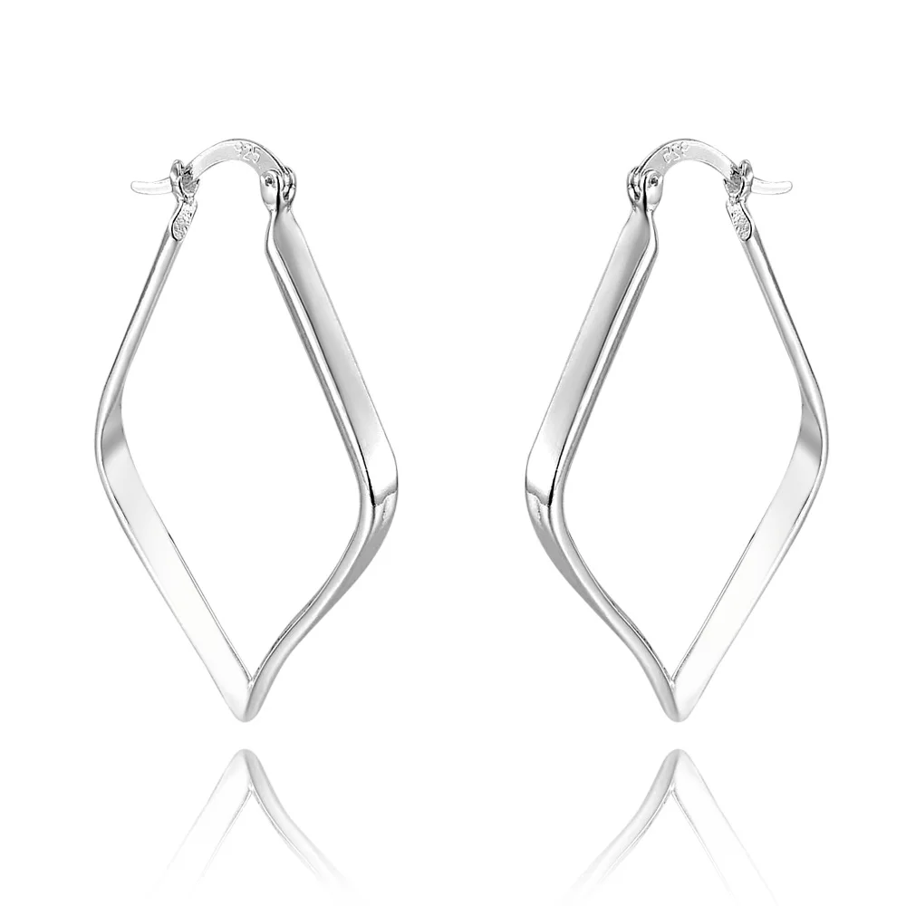 Boucles d'oreilles créoles géométriques simples en argent regardé 925 pour femmes, boucles d'oreilles cercle losange, bijoux de déclaration de mariage, mode