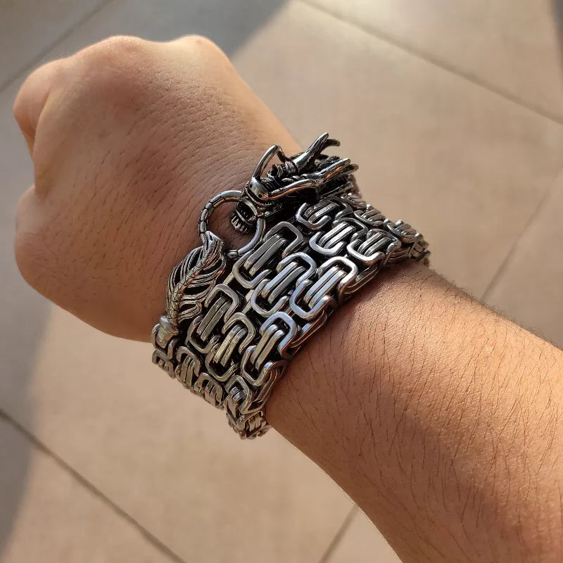 ★Ce bracelet de dragon est de style chinois, lorsque vous le portez, la tête de dragon et la queue de dragon sont connectées ensemble.