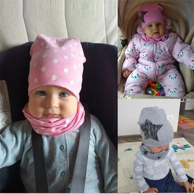 Chapeau en coton imprimé étoile pour bébé, casquette pour tout-petits, écharpe pour bébé, bonnet pour enfants, chapeaux pour garçons et filles, automne et hiver